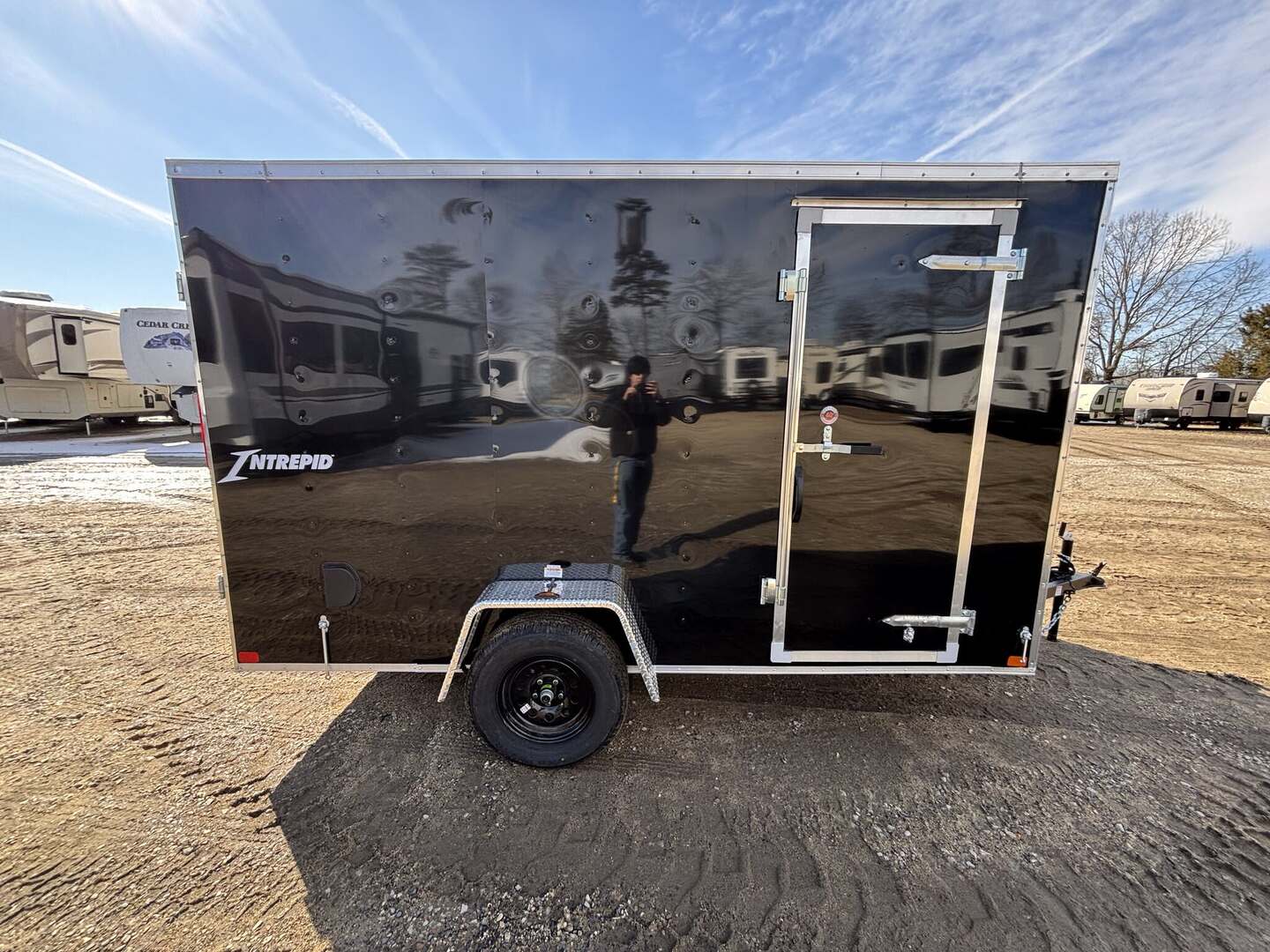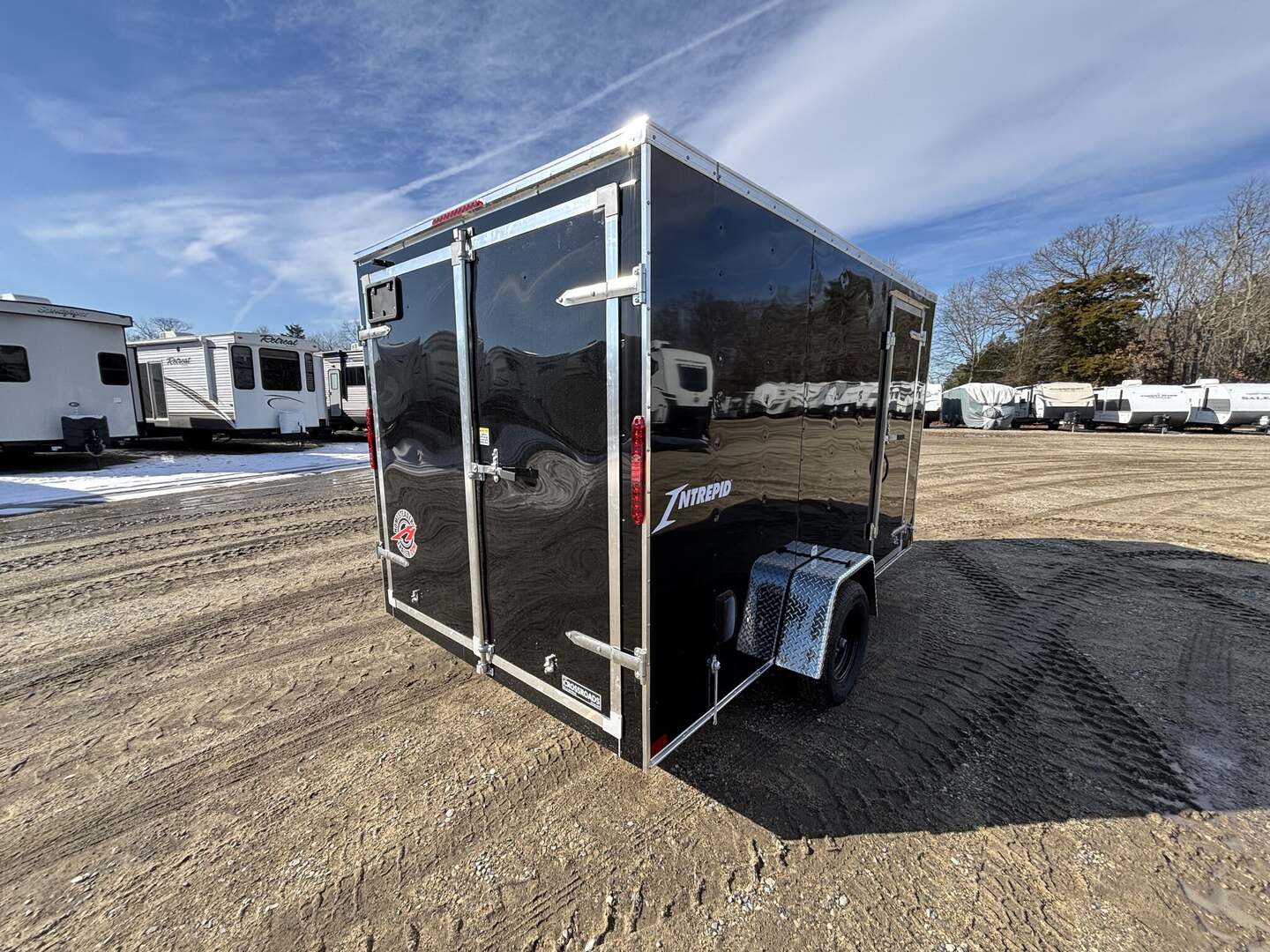 Homesteader Intrepid Cargo/Concession Trailer — New Arrival, In StockDiscover the Homesteader Intrepid, a durable cargo trailer designed for versatile hauling, storage, and mobile concessions. This in-stock 2026 model showcases a lightweight yet rugged build, perfect for businesses, outdoor enthusiasts, or RV fleets that need dependable gear transport. With a compact footprint and a large usable interior, the Intrepid blends mobility with practicality, making it an excellent choice for towed cargo, equipment transport, or on-site concessions.Key Specifications & Floorplan Size & Dimensions: Length 16 feet 4 inches, interior width 8 feet 5 inches, exterior height 8 feet 0 inches. Floorplan: 7x12IS. Construction: Aluminum exterior with a steel frame for strength and light weight; wood floor for easy loading and durability. Weight & Capacity: Dry weight approximately 1,480 pounds; payload capacity 1,510 pounds; gross vehicle weight rating (GVWR) 2,990 pounds. Hitch & Axles: Bumper pull hitch with a single axle for balanced weight distribution and easy maneuverability. Enclosure & Access: Fully enclosed to protect cargo from weather and theft; includes one side door and a rear opening for convenient loading. Color & Appearance: Sleek white exterior ready for branding and customization to fit your business or personal style.Why Choose the Homesteader Intrepid?This new arrival offers outstanding value with a practical size that’s easy to tow and economical to operate. Whether you’re outfitting a small business, transporting equipment for events, or using it as a mobile concession, the Intrepid’s compact footprint delivers surprising interior space and versatility. Its durable aluminum/steel construction provides long-lasting performance while remaining easy to maneuver with standard vehicles. The enclosed design safeguards against weather, theft, and debris, ensuring your cargo arrives in prime condition every time.Benefits at a Glance In stock and available for quick purchase Compact size with a surprisingly spacious interior Lightweight yet durable construction for easy towing Versatile use: hauling, storage, or mobile concessions Simple to customize with decals or branding on a clean white exteriorEnhance your transportation or mobile business with the reliable Homesteader Intrepid Cargo/Concession Trailer. This 2026 model, stock number 8289, is a smart addition for RV enthusiasts, small businesses, or outdoor operators seeking dependable performance. Contact us today to learn more or secure this trailer for your fleet.