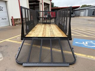 77 in x 16’ x 48 in Landscape Trailer 2 x 3,500 lb. Axles (Brakes on Rear Axle) ST 205 75 R15 Upgraded Radial Tires 48 in Expanded Metal Sides Front Toolbox Solid Side Fender Baskets Front Tongue Basket w/ Top Cover H/D Spare TIre Mount 48 in Spring Assist Rear Ramp Gate Weed Eater Racks Stake Pockets with Cut Outs 4 in Channel Wrapped Tongue 2 in 8K Coupler 3 in x 2 in x 3/16 in Angle Frame Treated Wood Floor 7K Set Back Jack with Foot and Brace Smooth Fenders 5 on 5 Bolt Pattern Empty Weight: 2,050 lbs. GVWR: 7,000 lbs. Carrying Capacity: 4,950 lbs
