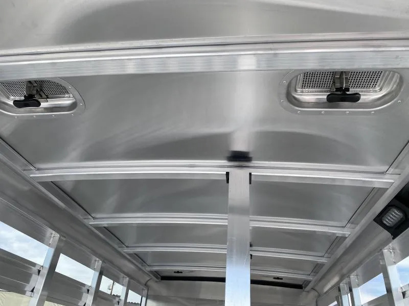 2026 Exiss 615A Mini Exhibitor Combo Bumper Pull Stock Trailer. * 6’ Wide, 15’ Long Box, 6’2” Tall * All Aluminum Construction * One Piece Aluminum Roof * White Aluminum Nose Sheets * Extruded interlocking non-skid aluminum plank floor * 2” x 4” I Beams on 12” centers * Extruded Aluminum Exterior Slats * Tandem 3500# Torsion Axles * 15” Radial Tires with 6 Lug Wheels * Aluminum Wheels * 4 Wheel Electric Brakes 3’ Straightwall Front Tack Room: * Camper Door with Sliding Window * Inside LED Light * Carpeted Floor * Spare Tire Stock Area: * Two Air Spaces with Plexiglas Tracks * 2” Lower Air Gap * Removable Plexiglas Inserts * 32” Wide Side Access Door * Removable 60/40 Pen System * (4) 5x9 Pop-Up Roof Vents * 50/50 Rear Stock Doors * Full Width Rear Ramp * LED Dome Light with Switch * LED Tail Lights * 2 5/16” Coupler Call D2 Trailer Sales 209-745-5480 or for more info www.d2trailersales.com
