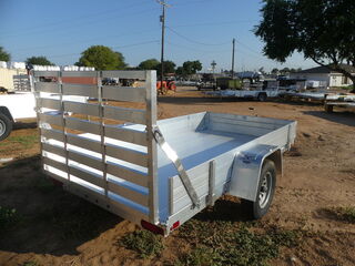 2000# Rubber torsion axle - No brakes - Easy lube hubs? ST175/80R13 LRC Radial tires (1360# cap/tire)? Steel wheels, 5-4.5 BHP? 12” Solid side kit? Aluminum fenders? Extruded aluminum floor? 6” Front retaining bumper? A-Framed aluminum tongue, 48” long with 2” coupler? 4) Stake pockets (2 per side)? 4) Tie down loops (2 per side)? Swivel tongue jack, 1200# capacity? LED Lighting package, safety chains? Aluminum tailgate - 50.25” x 39” longOverall width = 84.5”Overall length = 168”The Advertised Prices DO NOT Include: *Licensing* & TaxWe have over 200 trailers to choose from. Come in and see us at:6610 N I-35 Lacy Lakeview, TX 76705 (Exit 342B)Not in the great state of Texas? No Problem! We offer local and nation wide delivery.Store Hours:MON–FRI: 8:00 AM - 5:00 PMSATURDAY: 9:00 AM - 2:00 PMSUNDAY: ClosedRemember we handle all your Trailer Sales & Trailer Part Needs!!! Let us help you with servicing your trailer too! It is our pleasure to serve our community of Waco Texas and all of Central Texas!