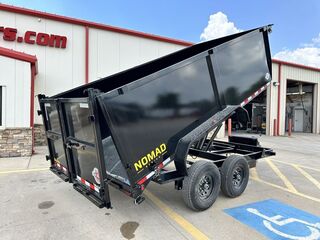83 in x 14’ Tandem Axle Dump Low Profile Frame Hand Crank Tarp 2 x 7,000 lb. Self Adjusting Brake Axles 2 5/16 in Adjustable EZ Latch Coupler 7K Drop Leg Top Wind Jack 6 in Channel Frame and Tongue ST 235 80 R16 in LR E (8 Hole) (10 Ply Radials) Lockable Pump and Battery Box Fully Self Contained Elec. Hyd. Scissor Lift Power Up & Down + Gravity Option Option To Gravity Lower To Save Battery Included 48 in Sides10 Gauge Steel Sides With Formed Channel Supports 10 Gauge Steel Floor 3 in x 2 in Tube Top Rail Diamond Plate Steel Fenders Barn Style Rear Gate (Spreader) 5 AMP On Board Charger 4 ½ in D Rings Rear Stabilizer Jacks 6’ 6 in Rear Slide Out Ramps LED Lights 3 Stake Pockets on Each Side (Accepts Board Brackets) 7 Way RV Plug Empty Weight 4,190 lb. G.V.W.R. 14,000 lb. Carrying Capacity 9,810 lb. 14.5 Cubic Yards Black