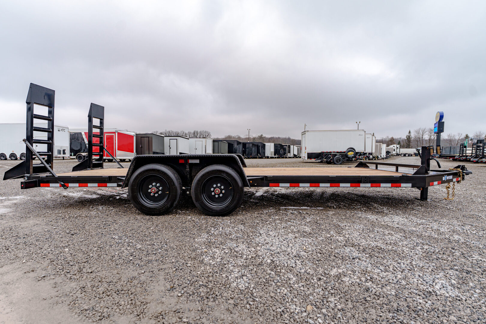 View Inventory: https://leonardtrailers.com/inventory/45755 Stock # 45755 New 2026 Bwise EH20-16-HD Equipment Trailer Color: Black 81” Wide x 20’ Long 16,000 lb GVWR 7” Channel Main Frame 2-5/16” Adjustable Coupler 12,000 lb Drop-Leg Jack 5’ Ladder Ramps (2) 8,000 lb Spring Suspension Tandem Axles — Electric Brakes LT215/75R17.5H Radial Tires on Black Modular Wheels (6) Weld-On D-Rings 2” Pressure-Treated Wood Decking We offer outstanding financing options, accept trades, and can arrange nationwide NO HASSLE delivery! Inquire today at (888) 333-6613. We believe these specifications to be accurate. Any discrepancies are unintentional. Please verify all information with a sales associate prior to purchase. Stock Number:45755