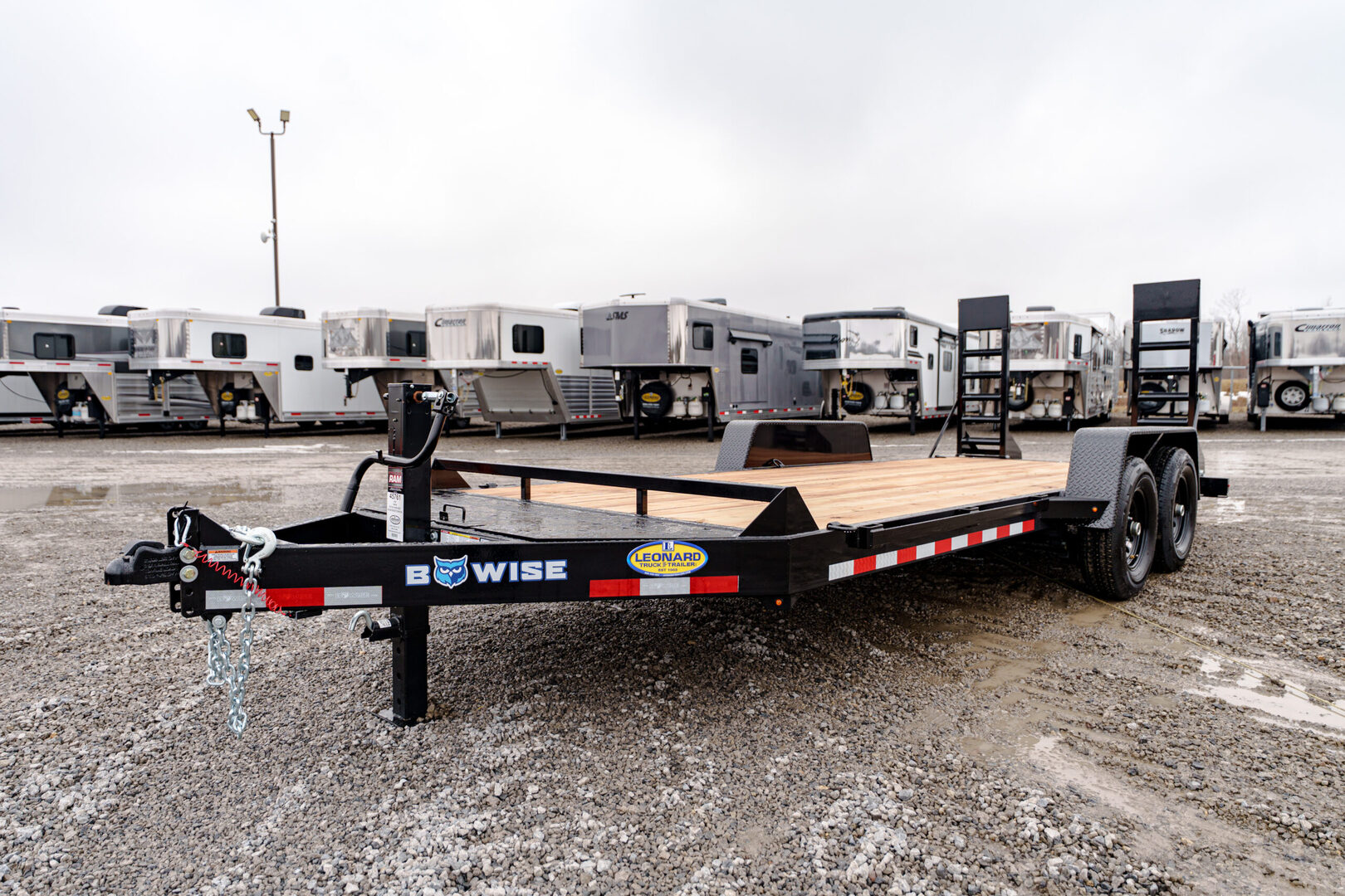 View Inventory: https://leonardtrailers.com/inventory/45761 Stock # 45761 New 2026 Bwise EH18-14-HD Equipment Trailer Color: Black 82” Wide x 18’ Long 14,000 lb GVWR 2-5/16” Adjustable Coupler 12,000 lb Drop-Leg Jack 5’ Ladder Ramps (2) 7,000 lb Spring Suspension Tandem Axles — Electric Brakes ST235/80R16E Radial Tires on Black Modular Wheels Stake Pockets with Rub Rail (6) Weld-On D-Rings 2” Pressure-Treated Wood Decking We offer outstanding financing options, accept trades, and can arrange nationwide NO HASSLE delivery! Inquire today at (888) 333-6613. We believe these specifications to be accurate. Any discrepancies are unintentional. Please verify all information with a sales associate prior to purchase. Stock Number:45761