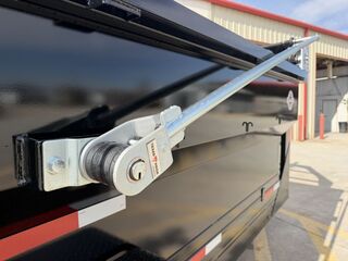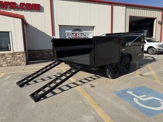 7’ x 14’ x 3’ Flare Side Dump Trailer (+/ 12 Cubic Yards) 2 x 7,000 lb. EZ Lube 8 lug (Brakes on both axles) Heavy Duty Slipper Spring Suspension Tires: New ST235/80R16 LRE 10 Ply Radials) Main Frame: Full 6 in. channel Gooseneck Tongue: 8 in. Channel Risers and Beams Tilt Frame: 3 in. x 2 in. tubing Cross Members: 3 in. channel Bed Flooring: 1/8 in. thick sheet steel Bed Siding: 1/8 in. thick sheet steel Deck width: 82 in. Deck Length: 14 in. Deck Height: Approximately 28 in. Side Wall Height: 36 in. Rear Doors: Double swing doors (open like barn doors) Battery: Group 24 deep cycle marine Pump: Electric over hydraulic (1.7 gpm) Controller: 15’ corded remote control Front locking toolbox contains battery and pump Hydraulics: Single 3 stage hydraulic cylinder (14,000 lb.) 2 5/16 in. Adjustable GN Coupler Two heavy duty safety chains Jack on Gooseneck: 12,000lb spring loaded drop leg Fenders: 14ga heavy duty tread plate Lighting: All flush mount or recessed lifetime LED Empty Weight 4,200 lb. G.V.W.R. 14,000 lb. Carrying Capacity 9,800 lb.