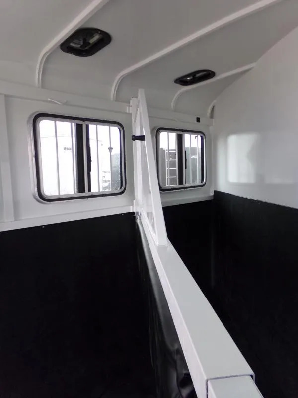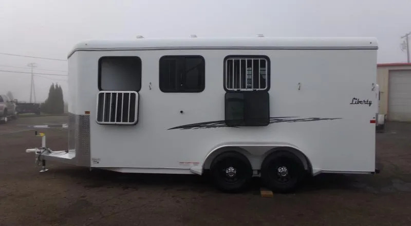 Upgrades * Spare Tire * Extra Divider Catch Trailer Features: * 7’ 6” Inside Height * 6” Roof Radius * 6’ 8” Inside Width * 82” Outside Width * 102” Overall Width (Including Fenders) * Electro-Galvanized Sheet Metal * Rear Load Light * 30” x 24” Drop Down Feed Door Windows * 24” x 20” Kickside Windows * Rubber Dock Bumper * Smooth Aluminum Fenders * LED Lights * 24” Front Diamond Plate * 4 Wheel Electric Brakes * Diamond Plate on Tongue & Sides * Aluminum Step Plates * Epoxy Primer & PPG Polyurethane Paint * Sealed & Enclosed Diagonal Wall Horse Area : * Telescoping Padded Dividers * Double Wall Construction * Double Rear Doors w/Windows * Roof Vents in Stall Areas * Caulk Pkg, Floor Mats * Head & Kick Wall Mats * Diagonal Wall Mats * Rear Door Mats Tack Area: * Stand Up Water Tank * Swing Out Saddle Tree * 5 Bridle Hooks * 2 Blanket Bars * 36” RV Side Door w/Window * Tack Door Organizer ** Descriptions Subject to Error** For more information on this trailer please contact Double J Trailers at 541-812-1234. Thank You! Financing available to qualified buyers! All trailer prices are cash prices. Thank you! Trades Welcome Two Lots To Better Serve You! Woodland Washington & Albany Oregon We have over 250 trailers in stock. Please view our entire inventory at [www.double-j.com](http://www.double-j.com/) thank you! *Double J imposes a surcharge of 3% on credit card purchases of amounts greater than $500*