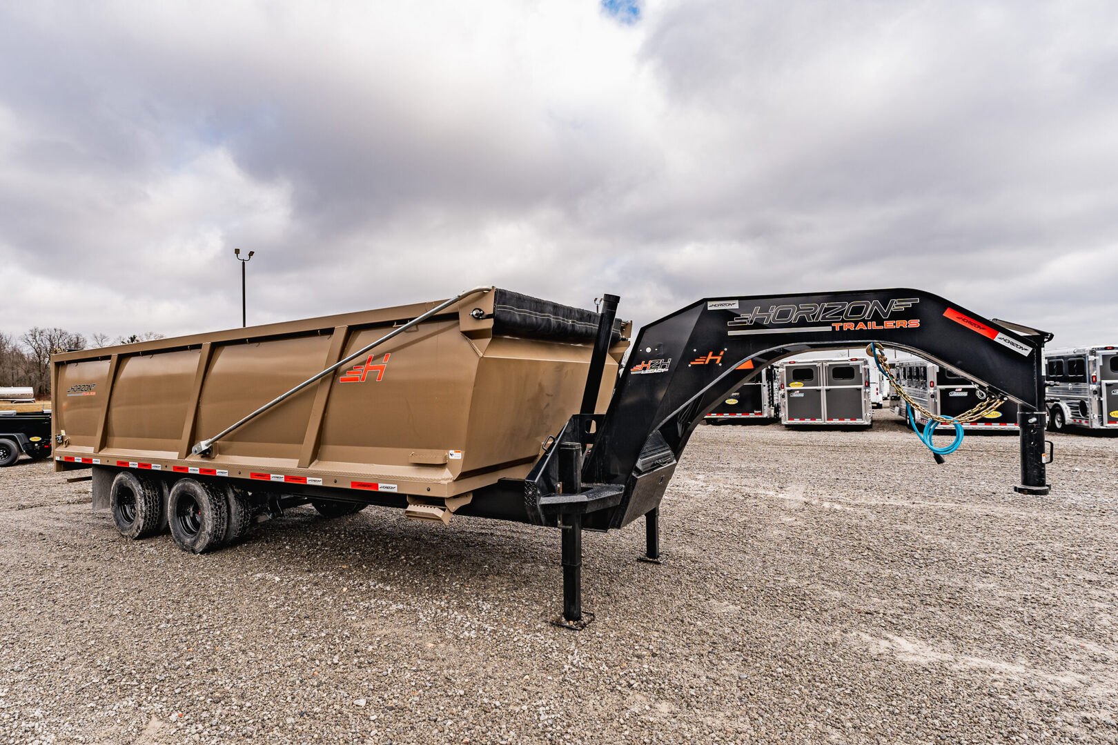 View Inventory: https://leonardtrailers.com/inventory/45771 Stock # 45771 New 2026 Horizon ZH 20’ x 96” x 4’ Gooseneck 10,000 lb 2-Axle Dump Trailer Color: Black / Desert Tan 20’ Length x 96” Width x 4’ High Sides 10,000 lb GVWR 2 Axles — Spring Suspension 12,000 lb Hydraulic Jack 14-Ply Tires — Dual Wheels Gooseneck Dump Trailer We offer outstanding financing options, accept trades, and can arrange nationwide NO HASSLE delivery! Inquire today at (888) 333-6613. We believe these specifications to be accurate. Any discrepancies are unintentional. Please verify all information with a sales associate prior to purchase. Stock Number:45771