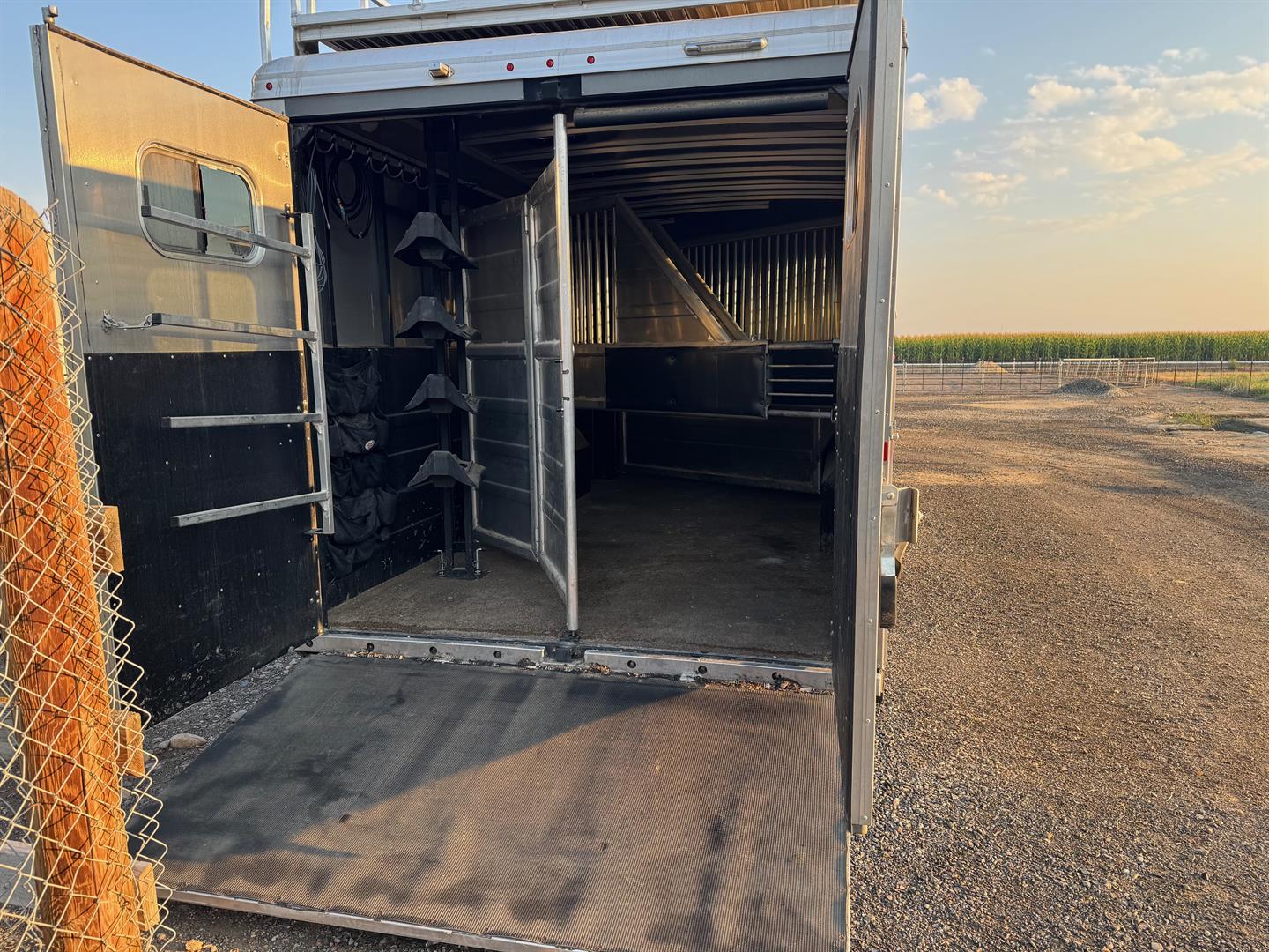 2019 Logan Coach Riot 4 Horse Living Quarters Trailer, customized and used mostly as a toy hauler.