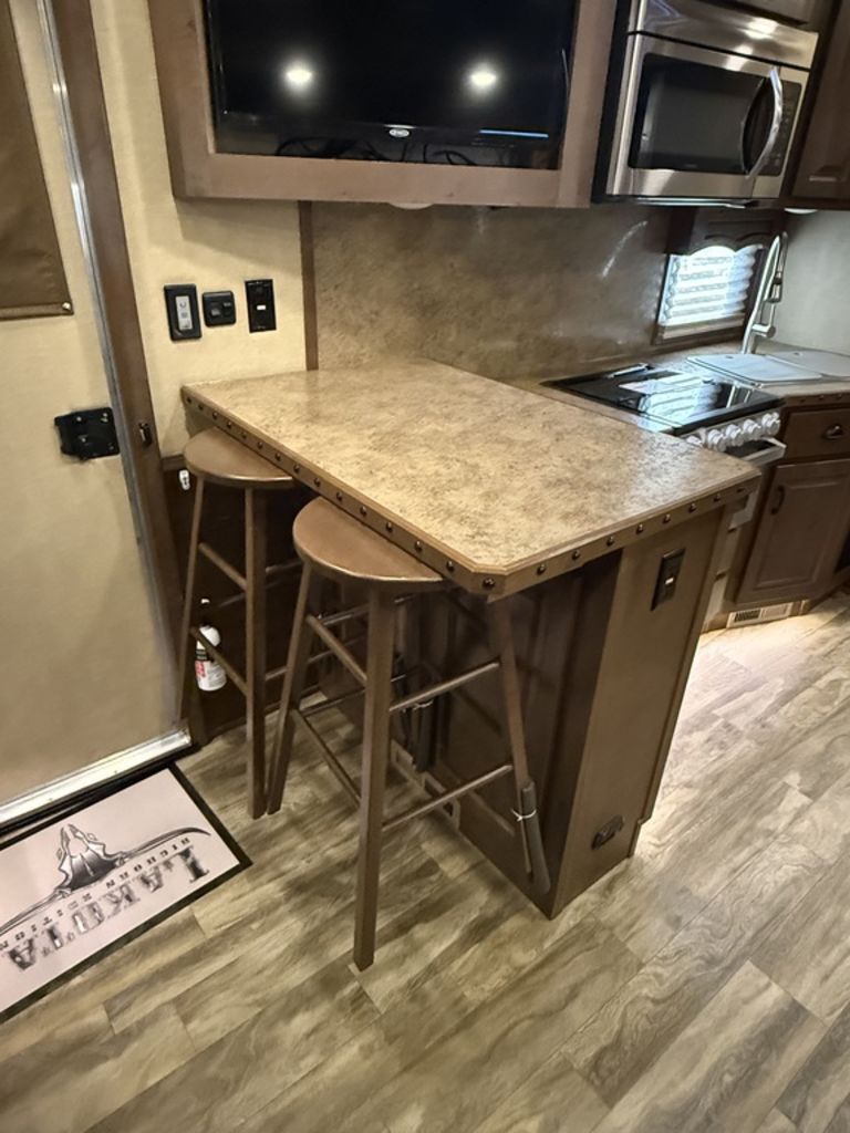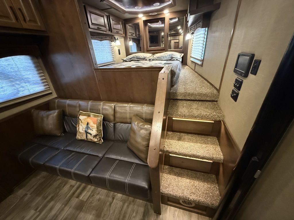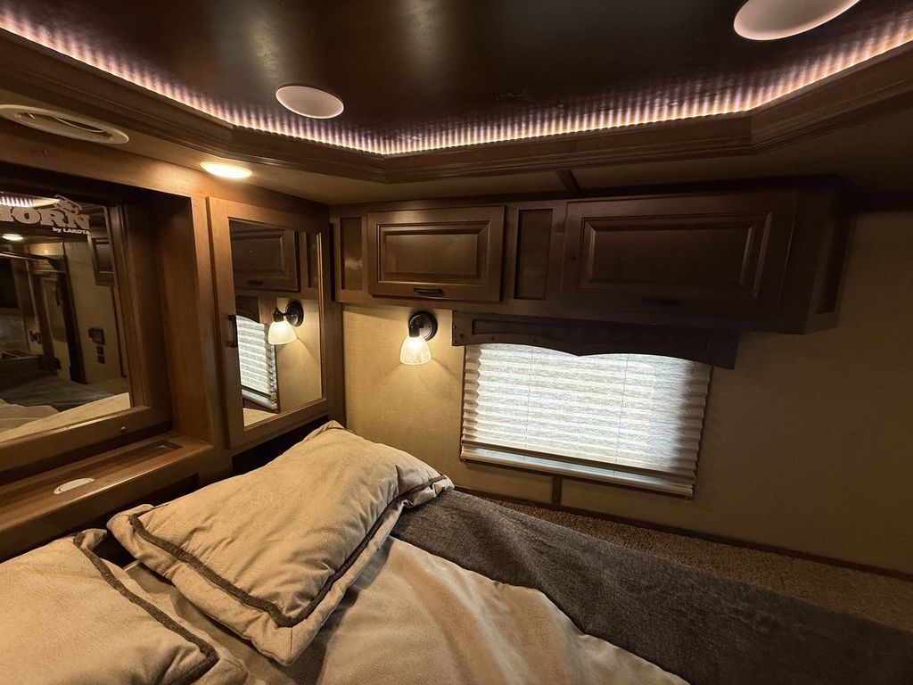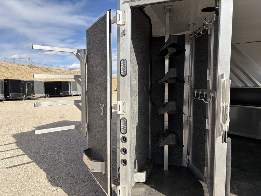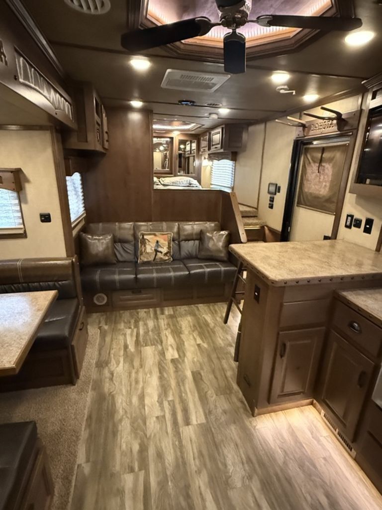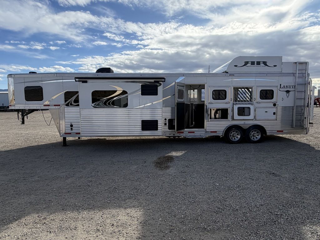 Gooseneck4 HorseLiving Quarters2 - 8K AxlesLT215/75R17.5 Tires w/Aluminum WheelsSpare Tire2-5/16” GN CouplerDual Big Foot Hydraulic JacksHay PodOn Board GeneratorAwningHorse Compartment:Drop Down Windows on both SidesStud DividerDrivers Side Escape DoorMangersWalk through door into LQTack Room:CollapsibleRear4-Tier Saddle Rack4-Tier Blanket Bar on DoorBridle HoodsBrush Tray on DoorLiving Quarters:Slide-Out on Drivers SideLots of StorageBed in NoseCouchDinetteBar Top w/StoolsTVRefrigeratorMicrowaveStoveOvenSinkShowerToiletSink in Bathroom