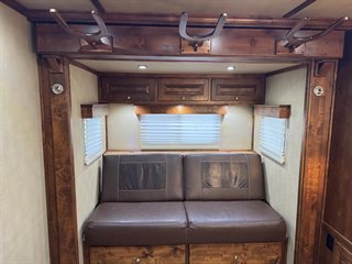 2019 Logan Coach Riot 4 Horse Living Quarters Trailer, customized and used mostly as a toy hauler.