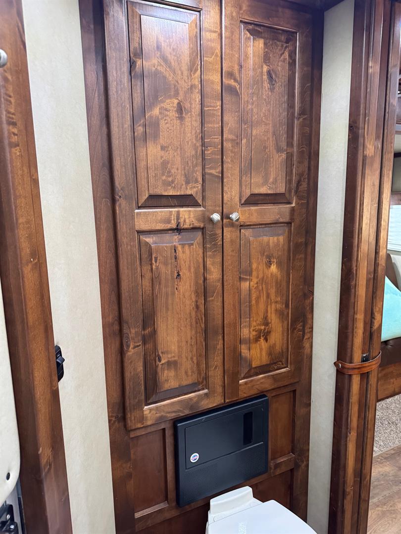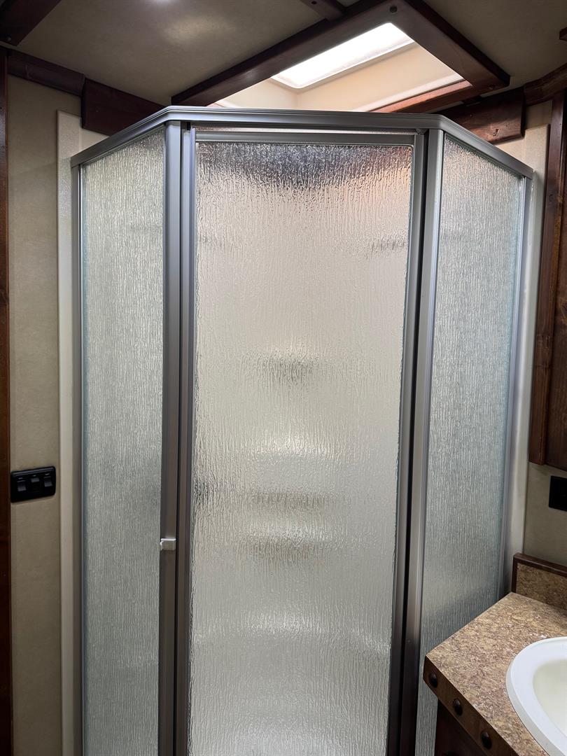 Keywords: toy hauler, camper, RZR hauler, golf cart hauler, gooseneck, living quarters trailer, LQ trailer, generator, slide out, Logan Coach, Riot, 4 horse trailer, Platinum 811, RV, off-grid camper, overlanding trailer