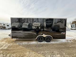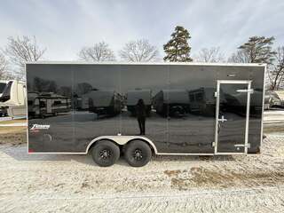The 2026 Homesteader 8x20IH is a rugged, enclosed cargo trailer built for work and play. With a spacious 8 ft 6 in wide floorplan, aerodynamic V-nose, heavy-duty frame, and quality construction, it’s ready to haul gear, ATVs, tools, or supplies with confidence. Finished in white with LED lighting and strong components, this trailer delivers reliable performance at a great value. Specs — 2026 Homesteader 8x20IH General Brand: Homesteader Series: Intrepid HD Model: 8x20IH Year: 2026 Type: Enclosed Cargo Trailer Color: White Dimensions Floor Length: 20 ft Overall Length: ~24 ft 6 in Width: 8 ft 6 in (102″) Interior Width: ~8 ft Interior Height: ~7 ft (84″) Exterior Height: ~9 ft Construction Steel frame, 16″ OC crossmembers .080 PolyCor exterior skin One-piece seamless aluminum roof 3/4″ exterior-grade plywood floor 3/8″ plywood interior walls V-nose design Running Gear Axles: Tandem 5,200 lb brake axles Brakes: Electric 4-wheel GVWR: 9,950 lb Dry Weight: ~3,800–4,000 lb Payload: ~6,000 lb+ Coupler: 2-5/16″ adjustable bumper-pull Jack: 5,000 lb drop-leg Tires: ST225/75R15 radial Wheels: Modular steel Doors / Access Rear ramp door with extension flap 32″ side entry door with barlock Rear opening ~94″W × 84″H Electrical / Lights LED exterior lights 7-way plug Breakaway kit with battery & charger Interior dome lights Interior Heavy-duty tie-down D-rings Flow-thru vent system