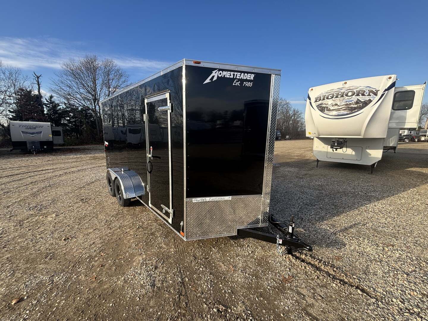 2026 Homesteader Intrepid 7x16 Cargo Trailer — Enclosed, In StockThe 2026 Homesteader Intrepid 7x16 is the ultimate cargo trailer for professionals and recreational enthusiasts who demand rugged durability, versatile space, and modern design. This enclosed trailer blends a strong steel frame with a lightweight aluminum body, delivering reliable towing performance and long-lasting value. With its white exterior and aerodynamic profile, the Intrepid is as capable on the job site as it is on weekend adventures near an RV park or campsite.Overview and AvailabilityFloor plan offers 16 feet of usable interior space in a compact 7 feet wide footprint, making it easy to maneuver yet expansive enough to organize tools, equipment, or gear for an RV setup. The trailer is a new arrival and currently in stock across locations, featuring stock number 7572 and ready for quick pickup or delivery. This model is ideal for those who need dependable storage on the move, whether you’re building out a mobile workshop or equipping a travel trailer setup with secure cargo space.Key Specifications Brand/Model: Homesteader Intrepid Type: Cargo trailer, enclosed Year: 2026 Length x Width: 16 feet long, 7 feet wide GVWR: 7,000 lbs Dry Weight: 2,390 lbs Payload Capacity: 4,610 lbs Floor Type: Pressure Treated Wood Construction: Aluminum body with steel frame Exterior Color: White Axles: 2 Hitch Type: Bumper Pull Enclosure: Enclosed cargo trailer Rear Opening: 6 feet 6 inches wide Interior Siding: 080 PolyCorNotable Features Rear spoiler with integrated LED lights for enhanced visibility and a modern look Easy loading and unloading through a wide rear opening Durable, weather-resistant interior finish designed to withstand heavy use Reliable towing stability from a dual-axle configuration New arrival status supports quick acquisition for in-demand needsWhy this Trailer Works for YouWhether you’re transporting equipment for a job site, hauling gear for outdoor adventures, or building out a mobile workshop, the Intrepid delivers dependable performance and generous payload capacity. Its robust build, efficient space, and practical features translate to safer handling and greater efficiency on the road. For RV owners and recreational vehicle enthusiasts, this cargo trailer provides a trusted platform to store gear securely and organize tasks efficiently, ensuring you’re ready for whatever the journey brings.Contact & AvailabilityStock Number: 7572 • Status: In stock • Location: All locations • Condition: New ArrivalReady to roll? Call 856-697-4497 or email sales@crossroadstrailers.com to learn more about the 2026 Homesteader Intrepid 7x16 and reserve this enclosure today.