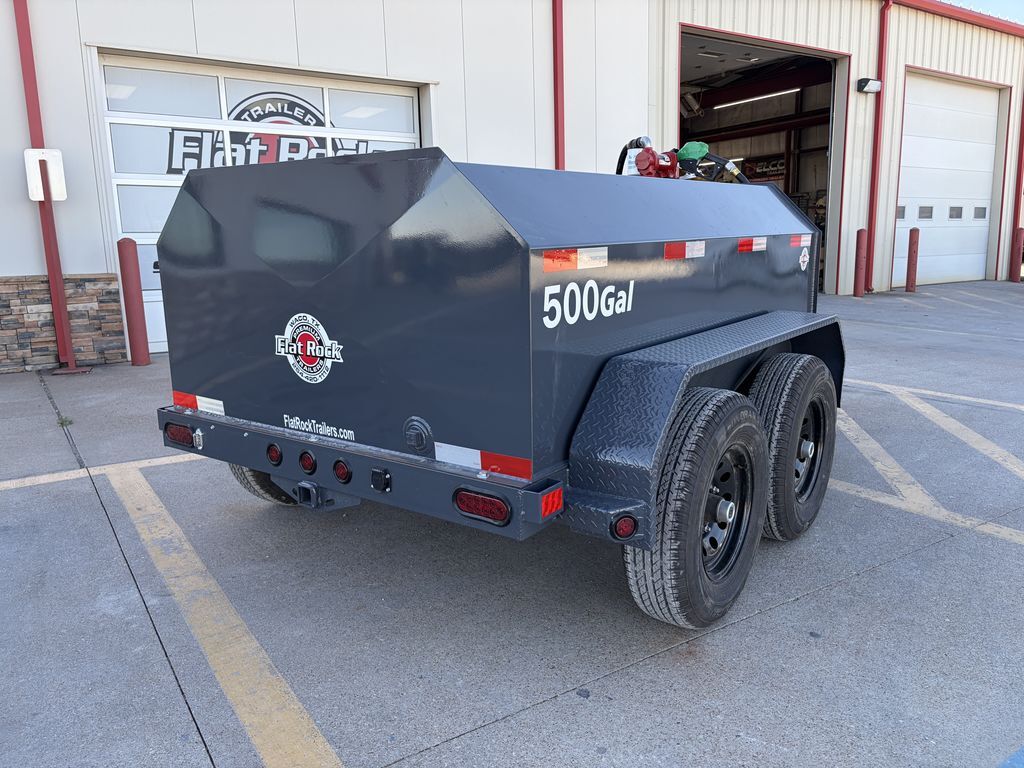 5 x 8 Diesel Tank Trailer w/ 500 Gallon Tank 2 x 5,200 lb. EZ Lube Brake Axles Fill Rite Pumping System 20 GPM Electric. Fill Rite Pump w/ 20’’ Hose / Auto Nozzle / Filter Kit / Charging Kit w/ Battery / Trickle Charger / Toolbox 500 GAL. Smooth Plate Tank 7 Gauge Floor & Ends 10 Gauge Body Double Eye Spring Suspension 15 in Black Mod 6 Hole Wheels ST225/75/R15 6 Ply Radial Tires 5 in 6.7 lb. Channel Frame 5 in 6.7 lb. Channel Wrapped Tongue 2 5/16 in Bulldog Style Ram Coupler 7k Drop Leg Jack Double Broke Diamond Plate Fenders 1 Baffle in the Middle 1/2 in Drain in the Back Centered 2 x 2 in Fill Ports on Top of Tank with Ventable Cap 12” Extended Tongue with Extra Supports Ready for DEF Setup (Fits 58 Gallon Tank) 7 Way Plug Flush Mount LED Lights 1 Coat of Primer and 2 Coats of Polyurethane Paint Empty Weight: 3,900 lb. GVWR: 9,990 lb. Carrying Capacity: 6,090 lb.