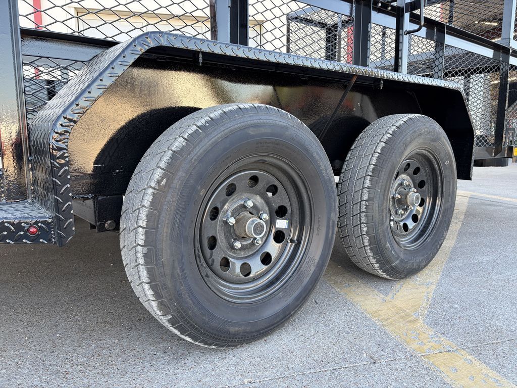 77 in x 14’ x 24 in Landscape Trailer 2 x 3,500 lb. Axles ST 205 75 R15 Upgraded Radial Tires 24 in Expanded Metal Sides Front Toolbox Solid Side Fender Baskets Front Tongue Basket w/ Top Cover H/D Spare TIre Mount 48 in Spring Assist Rear Ramp Gate Weed Eater Racks Stake Pockets with Cut Outs 4 in Channel Wrapped Tongue 2 in 8K Coupler 3 in x 2 in x 3/16 in Angle Frame Treated Wood Floor 7K Set Back Jack with Foot and Brace Smooth Fenders 5 on 5 Bolt Pattern Empty Weight: 1,850 lbs. GVWR: 4,495 lbs. Carrying Capacity: 2,645 lbs