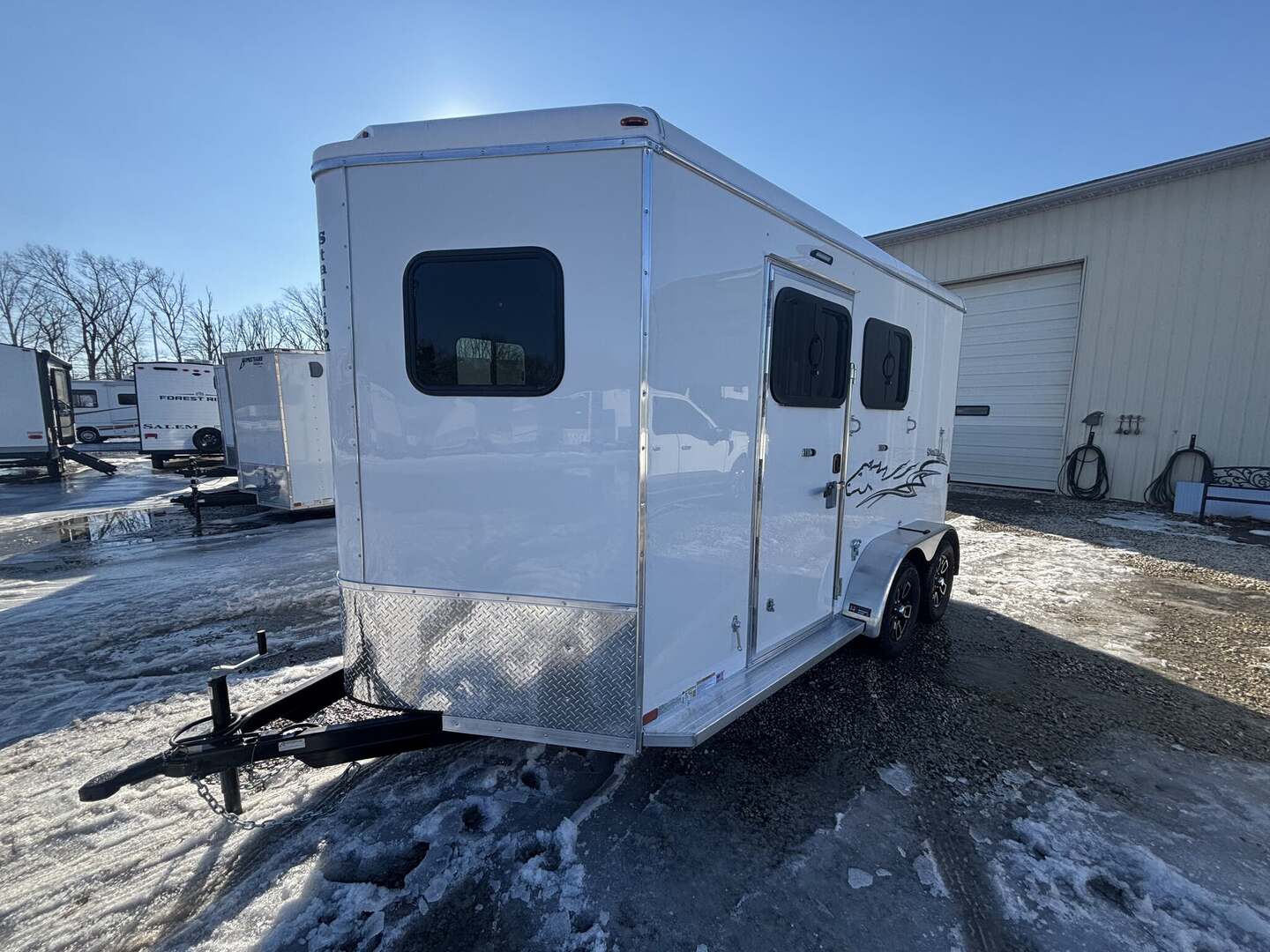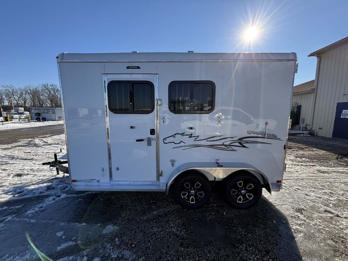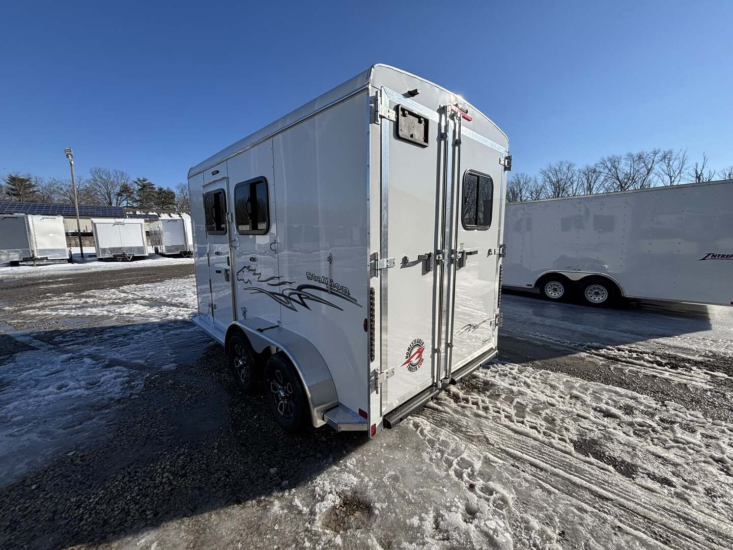 2026 Homesteader Stallion Horse Trailer — Enclosed 13’ Slant Load, Bumper Pull Introducing the 2026 Homesteader Stallion Horse Trailer, a premium enclosed option designed to protect your livestock and simplify travel. This bumper-pull model blends rugged durability with thoughtful practicality, featuring a lightweight aluminum exterior, a strong steel frame, and a focused interior optimized for two horses. In stock now as a new arrival, with sale pending, the Stallion is ready for ranch work, competition travel, or weekend adventures. Overview The Stallion delivers safety, comfort, and reliability for livestock transport. Its 213SB floor plan accommodates two horses in a slant-load configuration, reducing stress while maximizing space. Dimensions are 13 feet 0 inches in length, 7 feet 0 inches in width, and 7 feet 0 inches in height. With a gross vehicle weight rating of 7,000 pounds, it offers solid towing compatibility for a wide range of vehicles. Dry weight is 3,310 pounds and payload capacity is 3,690 pounds, leaving ample room for gear and supplies. The trailer’s enclosed design, two side doors, and rear loading opening provide convenient access for loading, unloading, and daily use. Inside, a bright white interior enhances visibility and creates a clean, calm environment for animals. Key Specifications Year: 2025 Brand: Homesteader Model: Stallion Type: Horse Trailer Length: 13 feet 0 inches Width: 7 feet 0 inches Height: 7 feet 0 inches GVWR: 7,000 pounds Dry Weight: 3,310 pounds Payload Capacity: 3,690 pounds Floor Plan: 213SB Load Type: Slant Floor Type: Rubber Construction: Aluminum exterior with steel frame Hitch: Bumper Pull Axles: 2 Horses Capacity: 2 Enclosure: Enclosed Interior Color: White Air Conditioning: 2 units Doors: 2 side doors, rear opening Availability: In Stock • New Arrival • Sale Pending Comfort, Safety & Convenience Two air conditioners for reliable climate control during transport Rubber flooring enhances safety and eases cleaning Aluminum exterior with steel frame for longevity and lighter weight Slant-load design minimizes stress and provides efficient space use Enclosed, weather-resistant exterior protects animals and gear Two side doors and rear loading for convenient access Why Choose the Stallion The Homesteader Stallion stands out for a robust build, practical layout, and driver-friendly towing. It pairs premium craftsmanship with everyday usability, making it a smart investment for professional ranchers and weekend riders alike. Whether you’re hauling clients’ horses or your own, this travel-friendly horse trailer offers reliability, safety, and peace of mind on every trip.