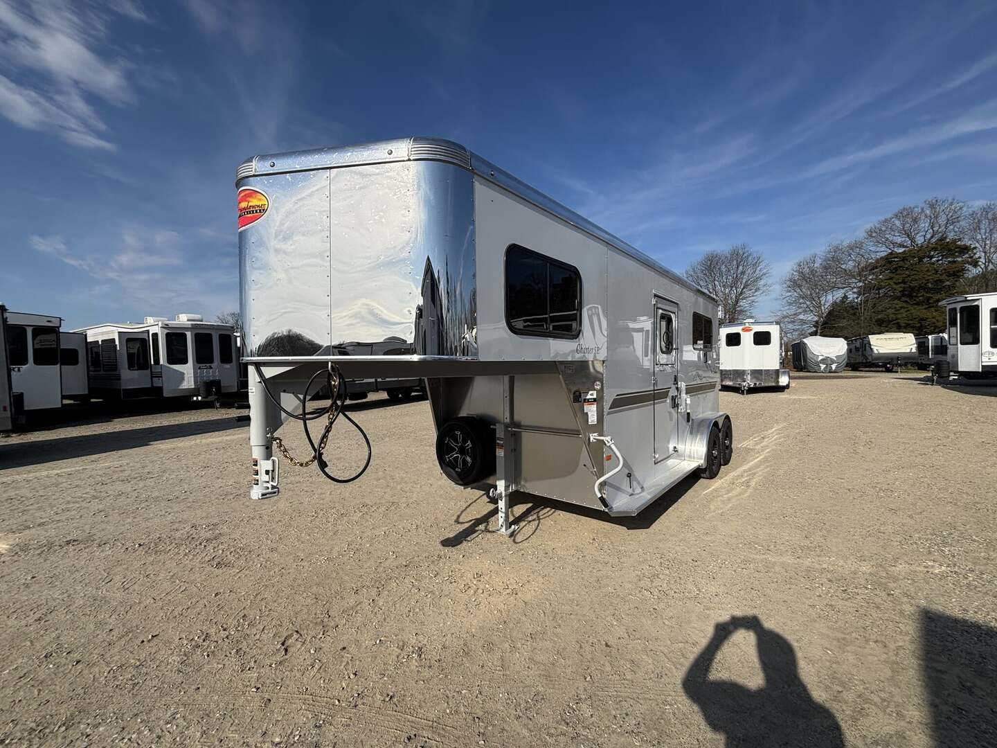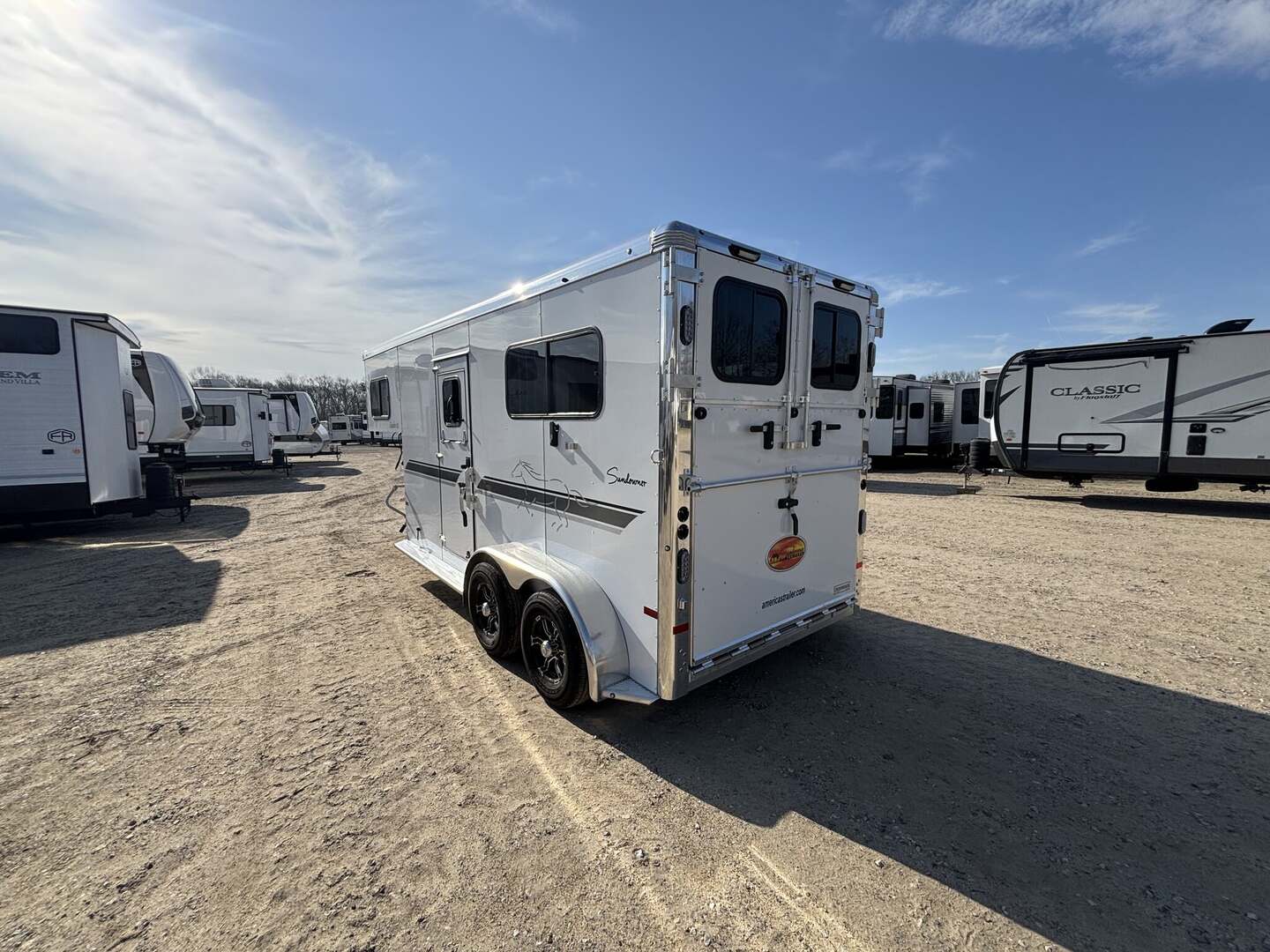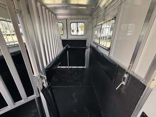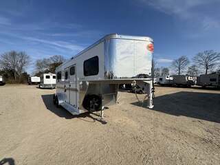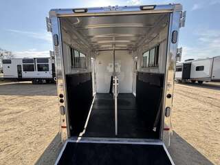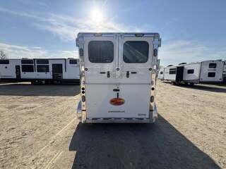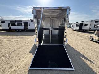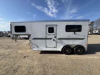 2027 2-Horse Gooseneck Trailer (2H GN TRSE) – Aluminum Enclosed Horse Trailer Feature: Added Footage to Horse Area (42” Head Area) Drop Feed Door (One Each Side Door) Drop Down Aluminum Face Guard Porch and Load Light Stall fan Introducing stock KC2420, a brand-new 2027 horse trailer designed for avid riders who demand durability, safety, and easy, stable towing. This enclosed, 2-horse trailer is built for frequent travel to shows, ranches, and trail destinations, providing a reliable home-on-wheels for your equine partners and gear. With a compact yet practical footprint, it delivers the balance of maneuverability and capacity needed for long road trips behind a pickup truck. Key Specifications Classification: Horse/Livestock Trailer (Enclosed) Type: Horse Trailer Floorplan: 2H GN TRSE Year: 2027 Length: 23 feet 1 inch Width: 6 feet 9 inches Height: 7 feet 6 inches Exterior Color: White Construction: Aluminum Floor Type: Aluminum Load Type: Straight Hitch: Gooseneck Axles: 2 Rear Opening: ID 4 (designated loading access) Hitch Weight: 900 lbs Dry Weight: 4,700 lbs Payload Capacity: 5,290 lbs GVWR: 9,990 lbs Hatches/Doors: 2 side doors Rear Enclosure: Yes, enclosed New: Yes Stock Number: KC2420 Construction and Design Highlights All-aluminum construction for lightweight strength and corrosion resistance Aluminum flooring designed for easy cleaning and long-lasting durability Enclosed trailer protects horses, tack, and gear from the elements Gooseneck hitch delivers stable, level towing and better weight distribution Straight-load configuration optimizes entry and exit for horses Two side doors provide convenient access to horses and gear from either side Why This Trailer Fits Your RV and Equestrian Lifestyle Although tailored for horse transport, this trailer complements the needs of riders who travel to events, ranches, or remote trails, often alongside an RV or travel trailer setup. The 23’1” length, 6’9” width, and 7’6” height strike a practical balance between maneuverability and available space for two horses and essential equipment. With a generous payload of 5,290 lbs and a GVWR of 9,990 lbs, you gain confident, capable towing without overburdening your vehicle. The white, clean exterior presents a professional look at shows or on the road, while the durable aluminum construction reduces overall weight to maximize usable cargo and horse comfort. This new, stock KC2420 unit is ready to hit the road with you and your horses, offering a dependable platform for transport that respects safety, efficiency, and year-round use. Key Benefits at a Glance Reliable two-horse capacity with secure, straight-load design Stable towing with a gooseneck hitch and two-axle setup Lightweight aluminum construction for increased payload and easier handling Fully enclosed for weather protection and gear security New model, stock KC2420 – ready for immediate delivery