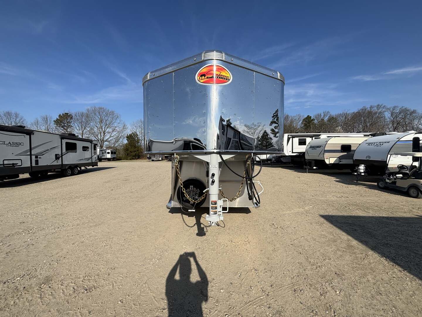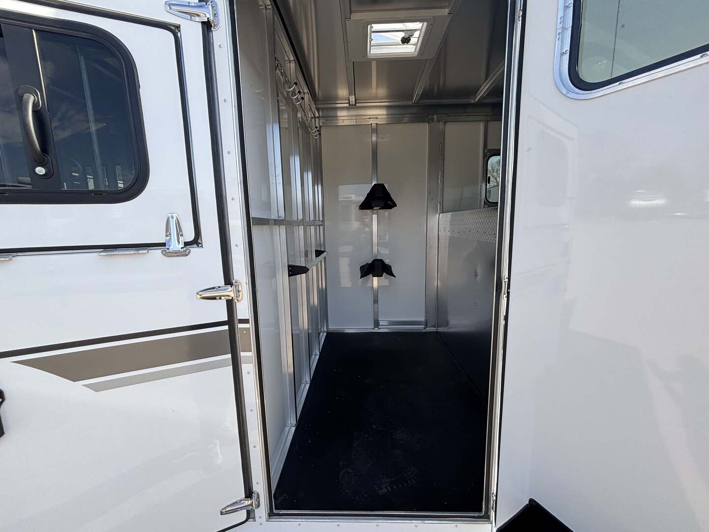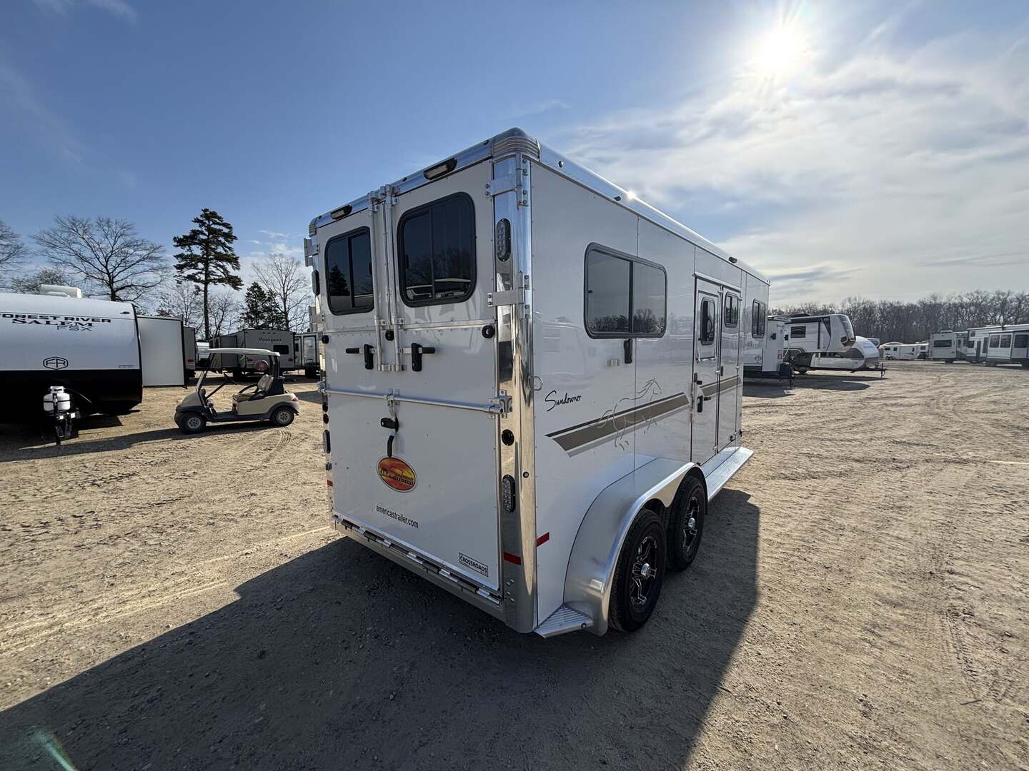 2027 2-Horse Gooseneck Trailer (2H GN TRSE) – Aluminum Enclosed Horse Trailer Feature: Added Footage to Horse Area (42” Head Area) Drop Feed Door (One Each Side Door) Drop Down Aluminum Face Guard Porch and Load Light Stall fan Introducing stock KC2420, a brand-new 2027 horse trailer designed for avid riders who demand durability, safety, and easy, stable towing. This enclosed, 2-horse trailer is built for frequent travel to shows, ranches, and trail destinations, providing a reliable home-on-wheels for your equine partners and gear. With a compact yet practical footprint, it delivers the balance of maneuverability and capacity needed for long road trips behind a pickup truck. Key Specifications Classification: Horse/Livestock Trailer (Enclosed) Type: Horse Trailer Floorplan: 2H GN TRSE Year: 2027 Length: 23 feet 1 inch Width: 6 feet 9 inches Height: 7 feet 6 inches Exterior Color: White Construction: Aluminum Floor Type: Aluminum Load Type: Straight Hitch: Gooseneck Axles: 2 Rear Opening: ID 4 (designated loading access) Hitch Weight: 900 lbs Dry Weight: 4,700 lbs Payload Capacity: 5,290 lbs GVWR: 9,990 lbs Hatches/Doors: 2 side doors Rear Enclosure: Yes, enclosed New: Yes Stock Number: KC2420 Construction and Design Highlights All-aluminum construction for lightweight strength and corrosion resistance Aluminum flooring designed for easy cleaning and long-lasting durability Enclosed trailer protects horses, tack, and gear from the elements Gooseneck hitch delivers stable, level towing and better weight distribution Straight-load configuration optimizes entry and exit for horses Two side doors provide convenient access to horses and gear from either side Why This Trailer Fits Your RV and Equestrian Lifestyle Although tailored for horse transport, this trailer complements the needs of riders who travel to events, ranches, or remote trails, often alongside an RV or travel trailer setup. The 23’1” length, 6’9” width, and 7’6” height strike a practical balance between maneuverability and available space for two horses and essential equipment. With a generous payload of 5,290 lbs and a GVWR of 9,990 lbs, you gain confident, capable towing without overburdening your vehicle. The white, clean exterior presents a professional look at shows or on the road, while the durable aluminum construction reduces overall weight to maximize usable cargo and horse comfort. This new, stock KC2420 unit is ready to hit the road with you and your horses, offering a dependable platform for transport that respects safety, efficiency, and year-round use. Key Benefits at a Glance Reliable two-horse capacity with secure, straight-load design Stable towing with a gooseneck hitch and two-axle setup Lightweight aluminum construction for increased payload and easier handling Fully enclosed for weather protection and gear security New model, stock KC2420 – ready for immediate delivery
