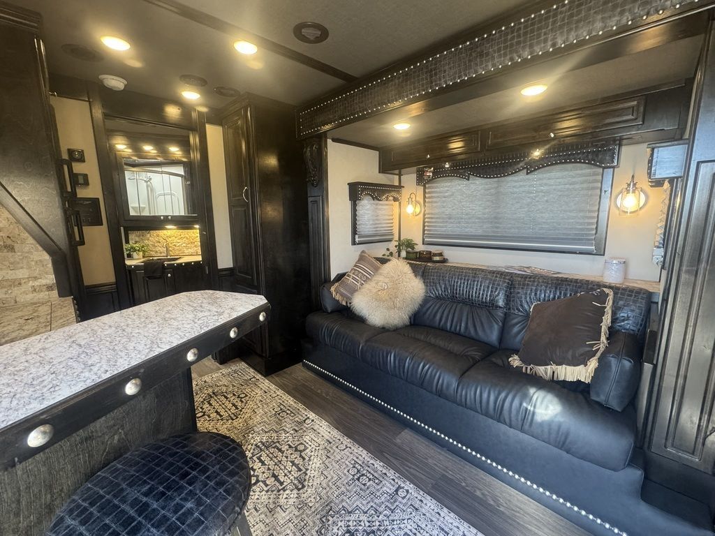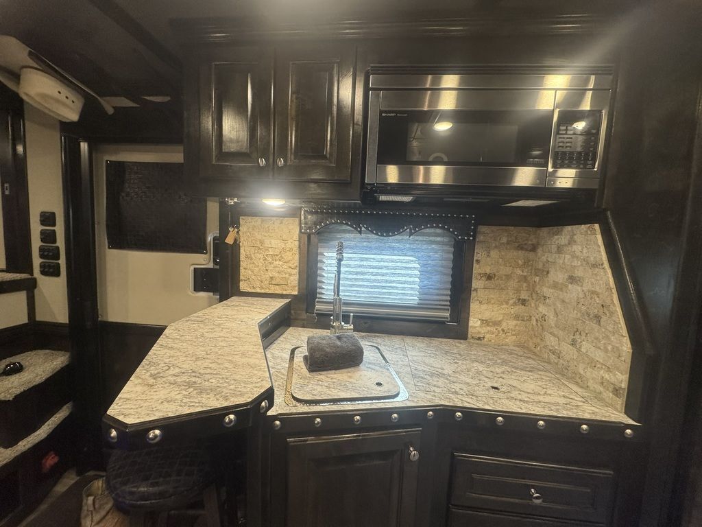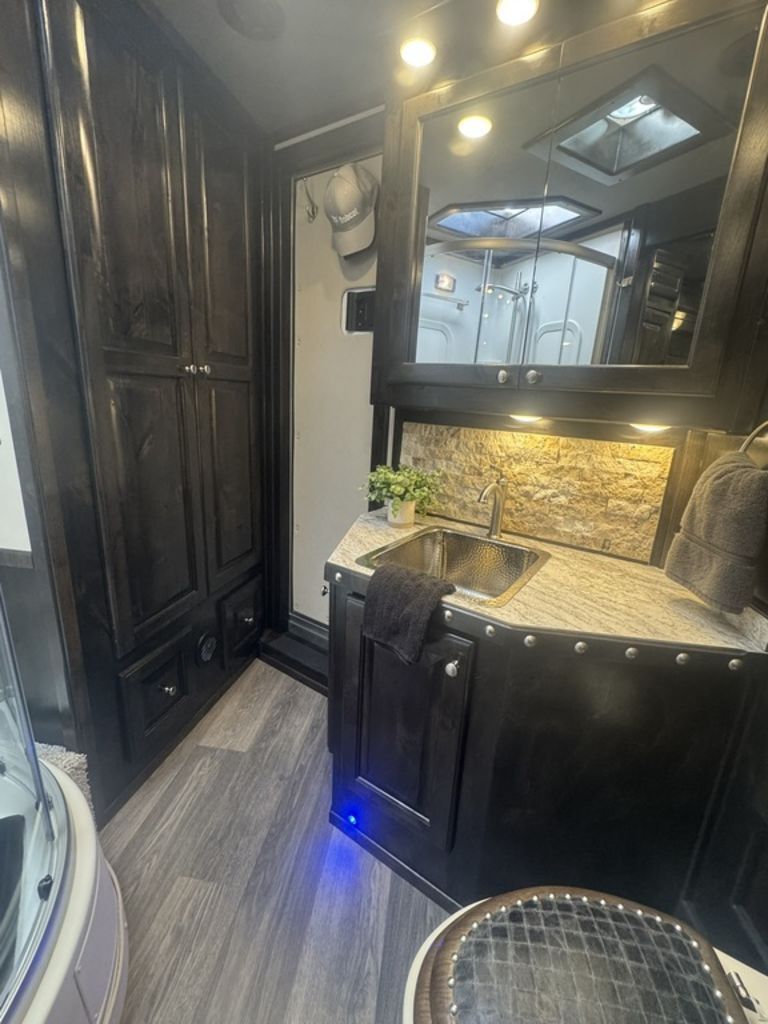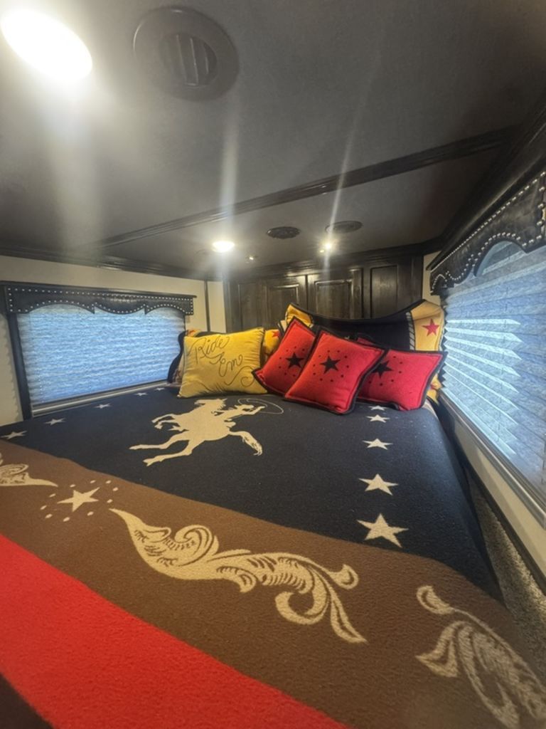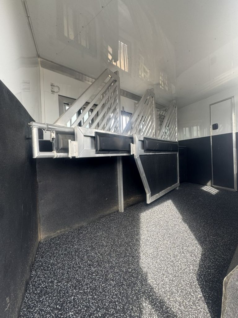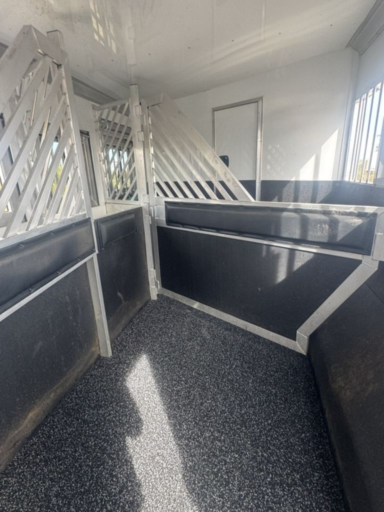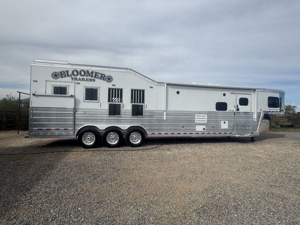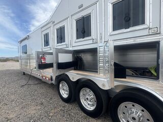 Appointment-only showings available. Please call to schedule. 2025 Bloomer Trailers 4 Horse 14’ 6” Living Quarters with an Outlaw Conversion *Trailer is located in Morristown, Arizona Appointment-only showings available. Please call to schedule. Features May Include: STRUCTURALHeight 8’ Wide 14’ 6” Living Quarter Floor Length Overall Length4 Horse Side Load All Aluminum Framing EXTERIOR One-Piece Aluminum Roof Skin2 Batteries Power Awning Exterior Water Spigot Integrated Hay Pod With LadderGenerator BoxDual-Leg Hydraulic Jack (2) Propane TanksSTALL AREA4 Horse Side LoadAluminum Floors WERM FlooringDrop Down Windows on Head and Tail SideFully Matted WallsInterior and Exterior Tie RingsTwo-way pop up vents Aluminum Padded Air Flow DividersLower Stud Wall (first stall)Escape Door in First Stall with Drop Down WindowExterior Step at Escape Door Mangers (Every Stall)Walk Through Door from LQ to Horse AreaTACK ROOMSolid Rear TackDouble Rear Doors CarpetedBridle Hooks Upper and Lower (4) Place Saddle Rack Brush Treys APPLIANCE 8.0 RefrigeratorStainless Microwave Cooktop w/Cover Convection Oven with Power Vent HoodINTERIOR DECOR6’ Hydraulic Slide Out Solid Alder Cabinets And Trim Raised Panel Cabinet Doors Crown Molding Soft Touch WallsInsulated Ceiling And WallsCabinets Throughout Custom Window ValancesWindow ShadesSofa in Slide Steps to Bed AreaOutlaw Flex Queen MattressPLUMBINGDouble 20# Lp System12v On Demand Water Pump40 Gal Fresh Water Tank Black / Grey Holding Tanks (30 Gal Ea)Sewer Hose & CarrierHot Water Heater Radius Corner Shower W/ Glass Door Skylight Over ShowerBathroom Vent Fan W/ Power Dome Custom Hammered Sinks W/Deluxe Faucets Full Length MirrorGrey and Black Water Tank ELECTRICAL On Board Generator (45 hours) Detachable Power Cord Battery Disconnect SwitchGfi ReceptaclesStarlink Satellite Exterior Receptacle12v Reading Lights Led Lighting Package Lighted Grab Handle Power Awning W/ Shield AM/FM/CD/DVD StereoLED Lighting Throughout Flat Screen TVInterior and Exterior Speakers Ducted 20,000 BTU Furnace Ducted 15,000 BTU A/C Thermostat BATHROOM Vanity, Medicine Cabinet with MirrorStandard Faucet with Mirror Porcelain Toilet with Foot Flush Shower w/Glass Door Please Note, this trailer is on consignment. Being Sold AS IS. This trailer has been ran through our service department.