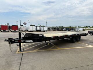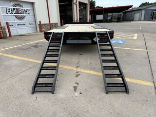 22’ Tandem Axle BP Single Deck Over 2 x 7,000 lb. Electric Brake Axles 2 5/16 in Adj. Ram Coupler 102 in Overall Width 1 x 10K Drop Leg Jack (Bolt On) 8 in I Beam Frame and Tongue 3 in Channel Cross Members 6 in Tube w/ HD Rub Rail and Stake Pockets 8’ Slide in Ramps ST 235 80 R16 Load Range E Tires & Wheels Black Out Wheel Spare Mount All LED Lights Treated Wood 7 Way RV Plug Empty Weight: 4,300 lbs. GVWR: 14,000 lbs. Carrying Capacity: 9,700 lbs.