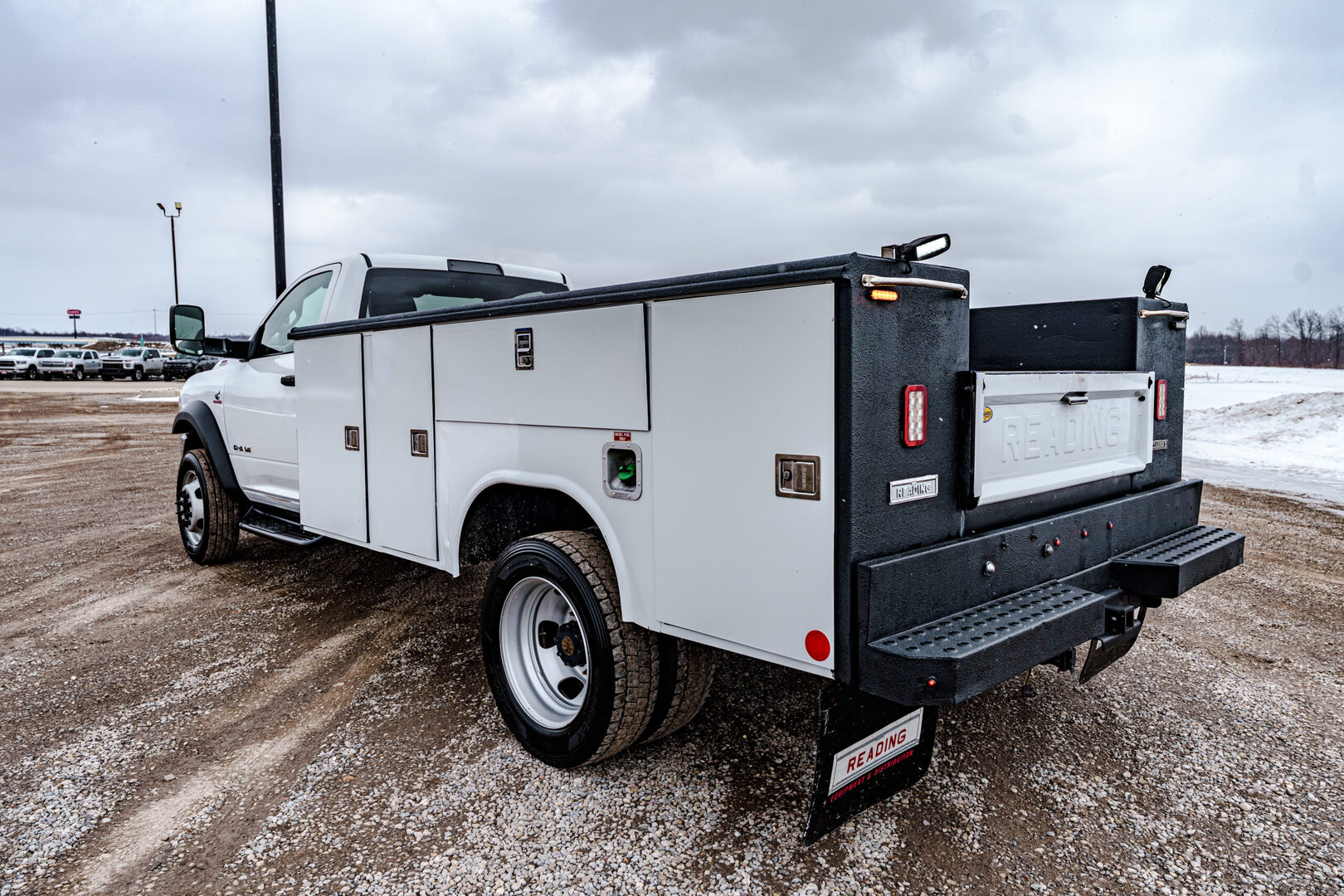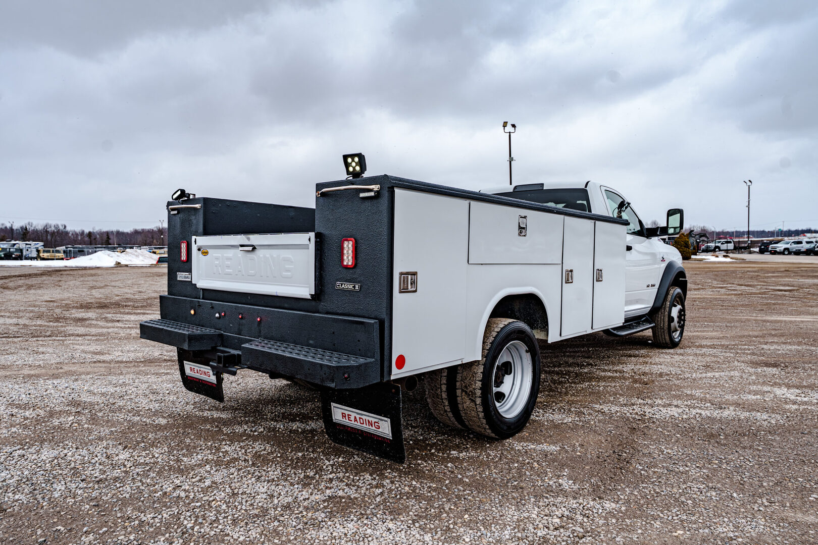 View Inventory: https://leonardtrailers.com/inventory/45808 2019 Ram 5500HD Tradesman Odometer: 116,395 Engine: Cummins 6.7L I6 Turbodiesel Color: Bright White Clearcoat Interior: Diesel Gray/Black Vinyl Transmission: Aisin 6-Speed Automatic VIN: 3C7WRMBL6KG580063 Stock #: 45808 Drivetrain: RWD Technical Traction control 220 Amp Alternator 87 mph Maximum Speed Interior Air Conditioning Rear A/C Heater Prep Group Front 1-Touch Down Power Windows Power steering Remote Keyless Entry Speed Sensitive Power Locks Speed control 115V Auxiliary Power Outlet 400W Inverter 5.0” Touchscreen Display Door Sill Scuff Pads Driver door bin Electronically Controlled Throttle For More Info, Call 800-643-2112 Glove Box Integrated Voice Command w/Bluetooth Map/Courtesy Lamp Overhead Console Overhead Cupholder Lamp Passenger vanity mirror Rear Dome Lamp Satin Chrome Interior Door Handles Tachometer Temperature & Compass Gauge Tilt steering wheel Upgraded Door Trim Panels USB Host Flip Voltage Monitoring Auto Idle Up System Voltmeter 40/20/40 Split Bench Seat Front Armrest w/Cupholders HD Vinyl 40/20/40 Split Bench Seat Manual Adjust 4-Way Driver Seat Manual Adjust 4-Way Front Passenger Seat Exterior Delay-off headlights Fully automatic headlights Halogen Quad Headlamps Black Wheel Flares Chrome Grille Surround Exterior Mirrors Courtesy Lamps Exterior Mirrors w/Heating Element Exterior Mirrors w/Supplemental Signals Matte Black Grille Surround Matte Black Mesh Grille w/Chrome Mirror Running Lights Power Black Trailer Tow Mirrors Trailer Brake Control 19.5” x 6.0” Steel Wheels Variably intermittent wipers Electronic 1-Year SiriusXM Radio Service 4 Speakers AM/FM radio GPS Antenna Input Radio data system Radio: Uconnect 3 w/5” Display Radio: Uconnect 3.0 SiriusXM Satellite Radio Safety 4-Wheel Disc Brakes ABS brakes Bright Front Bumper Dual front impact airbags Front anti-roll bar Occupant sensing airbag Rear anti-roll bar Electronic Stability Control Stock Number:45808