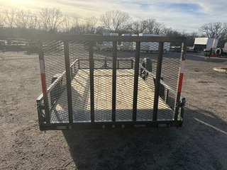 2026 MAXX-D S3X 83”X14’ UTILITY TRAILER 2990# GVWR 2” ADJUSTABLE COUPLER 7K DROP LEG JACK 4” CHANNEL WRAP TONGUE 2X3X3/16” ANGLE FRAME 2X3X3/16”CROSS MEMBERS 2” SQUARE TOP RAILS 1’ DOVETAIL/4’ SPRING GATE 1 3.5K IDLER AXLE 15” TIRES FULL SIZE SPARE AND MOUNT SLIPPER SPRING SUSPENSION DOUBLE BROKE DP SINGLE AXLE FENDERS 2X8 TREATED FLOOR LED LIGHTS