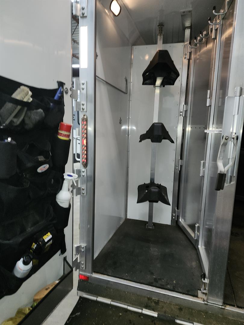 2012 Lakota Charger 8311 3 Horse Slant Load. This Horse Trailer is like new.All aluminum.11' short wall. Slide out.Hay mangers. Sleeps 4.Matress has a Serta memory foam topper. Used 4 times. Always stored in a heated garage. Ramp load or remove it for step up. Customized interior with cow hide. New batteries, comes with tire covers. Ducted A/C and heating system. Tires were replaced with E Rated. New awning with cover.Big foot jack system. I have the build sheets.To much extras to list all of them. This is the trailer you have been waiting for. I will bevhappy to answer any questions you may have.This trailer is in a heated building and can be viewed at anytime.Transportaion is available