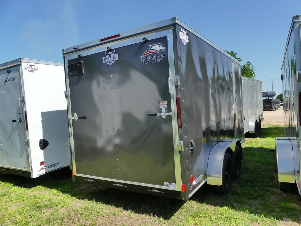 1-Piece Aluminum Roof16in Starbright Stoneguard3/4in PlexCore DeckingCrossmembers 16in On CenterSidewall Flow-Thru VentsStandard A-Frame TongueV-Nose12V Dome Light2,000lb Top Wind Tongue Jack7’ Approximate Inside HeightSand PadST205/75R15C Radial 5B AH Silver Mod Steel WheelTube Roof Bows 24in On CenterDeluxe Package----Flush Lock RV Door.030 WallsInterior Walls 3/8”4-5k lbs Tie downsSemi Screwless WallsThe Advertised Prices DO NOT Include: *Licensing* & TaxWe have over 200 trailers to choose from. Come in and see us at:6610 N I-35 Lacy Lakeview, TX 76705 (Exit 342B)Not in the great state of Texas? No Problem! We offer local and nation wide delivery.Store Hours:MON–FRI: 8:00 AM - 5:00 PMSATURDAY: 9:00 AM - 2:00 PMSUNDAY: ClosedRemember we handle all your Trailer Sales & Trailer Part Needs!!!Let us help you with servicing your trailer too!It is our pleasure to serve our community of Waco Texas and all of Central Texas