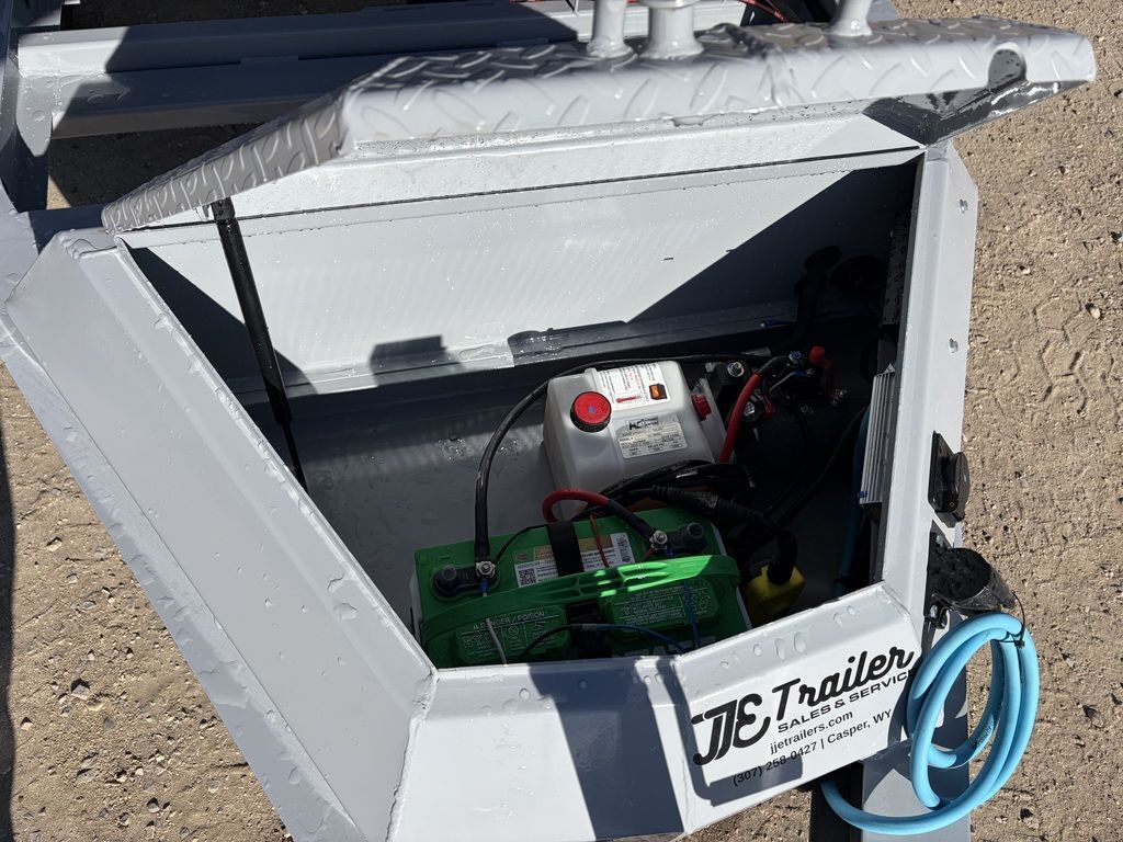 Bumper Pull2 - 3.5K Lippert Electric Brake Auto Adjust EZ Lube Spring AxlesST205/75R15 Tires (8 ply) w/Black Mod WheelsWeld on Spare Tire Mount2-5/16” Adjustable BP Coupler (17K)1 - Side Wind Spring Loaded Drop Leg Jack (7K)Lockable Toolbox Houses Battery & Pump3 Way Door Gate - Spreader GateRamp Pockets w/5’ Long Slide in 3” Channel Ramps14ga. Diamond Plate Steel Fenders2’ Sides4 D-Rings Welded Inside Bed6” I-Beam FrameNeckboss 6” Engineered I-Beam Tongue1/4” Grade 70 Safety Chain w/Clevis Hook3” Channel 16” Spacing Crossmembers2 Button Hydraulic - Power Up/Power Down Pump1 - Interstate 27 Deep Cycle Battery110V Integrated Trickle ChargerManual Tarp KitAll-Weather Wiring Harness (7-Way RV)Powdercoat Cloud Gray9 ga. Steel BedWeight: 2,430 lbs.