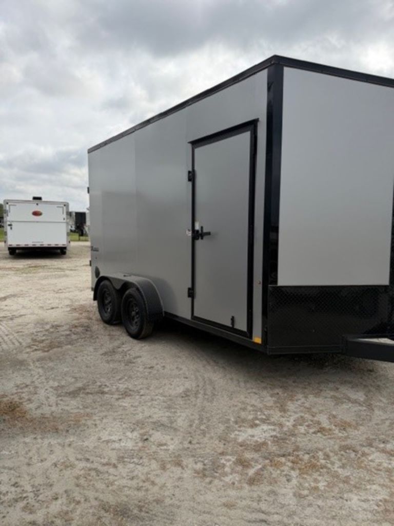 7 x 14 XL SE ”V” NOSE w/ RAMP 14’ FLOOR / 7’ WIDE / 7’6 TALL (2) 3500LB DROP SPRING AXLES 6” x 2” STEEL TUBE TONGUE 2 & 5/16” COUPLER 16” ON CENTER STEEL TUBE WALL POSTS 16” ON CENTER STEEL TUBE ROOF BOWS 36” SIDE ACCESS DOOR w/ ALUMINUM HOLDBACKS SIDEWALL AIRFLOOW VENTS PIEDMONT .080 COMPOSITE EXTERIOR PANELS SCREWLESS SIDEWALLS TRANSLUCENT ROOF 3/4” ENGINEERED FLOORING ASPHALT EMULSION UNDERCOATING 6” ADDED TO HEIGHT (7’6” TALL) (4) 5,000LB D RING w/ STEEL PLATE SPARE COMPOSITE SILVER EMPTY = 2,210 GVWR = 7,000