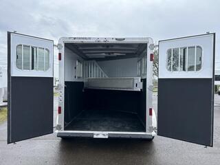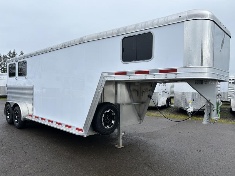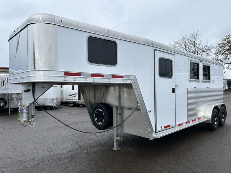 PRICE DOES NOT INCLUDE RAMP. PRICE WITH RAMP $29,300 UPGRADED OPTIONS: - LED Load Lights, one on each side of horse area - Crank Type Roof Vent 14” x 14” - Swing Out Saddle Rack Standard Options: - 7’0 wide - 7’0 tall - Double Rear Doors with Windows - Drop Down Feed Windows with bars - Padded Stall Dividers - Slam Latch Dividers - Airflow Dividers - Rubber Mats in Horse area - Turf on floor in Tack room & Gooseneck area & Drop wall - 5’ long clothes rod, Brush tray, Aluminum halter hooks - Swinging Blanket Bar - 6-hole silver aluminum wheels with Goodyear ST235/80R16 Load Range E tires - Rubber Torsion Axles 5200# - Electric Brakes - LED Load Light - LED Strip in Horse Area, and 2 in Tack Room - Coupler: 2 5/16” - Single Speed jack Warranty: 10-year limited structural warranty; 3-year hitch-to-bumper warranty. ** Descriptions Subject to Error** For more information on this trailer please contact Double J Trailers at 360-225-1234. Thank You! Financing available to qualified buyers! All trailer prices are cash prices. Thank you! Trades Welcome Two Lots To Better Serve You! Woodland Washington & Albany Oregon We have over 250 trailers in stock. Please view our entire inventory at [www.double-j.com](http://www.double-j.com/) thank you! *Double J imposes a surcharge of 3% on credit card purchases of amounts greater than $500*