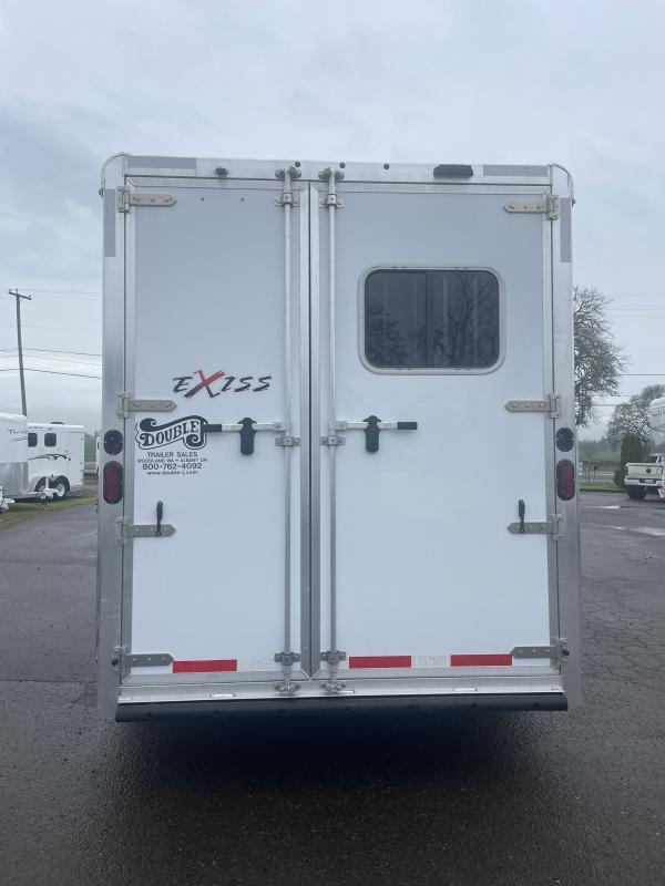 *TRAILER IS $1300 BELOW COST! HUGE SAVINGS THIS DEAL WONT LAST LONG!!!* . 7’8” TALL, EASY CARE FLOOR, ESCAPE DOOR, EXTRUDED SIDES, FRONT AND COLLAPSIBLE REAR TACK. The 7000 Series of slant load gooseneck horse trailers comes in 2 through 6 horse floorplans. The trailer combines an impressive appearance with the horse-friendly features for which Exiss is famous. And its standard features such as a folding rear tack, patented slam latches and carpeted dressing room make it the perfect choice for the serious horse enthusiast. An Exiss trailer features an aluminum frame and an aluminum exterior. Benefits of our aluminum construction include a lighter trailer weight, better towability, easier maintenance and increased value over the life of the trailer. Exiss horse trailers are built with interlocking plank flooring welded to 2” x 4” I-beams on 13” or 16” centers. Planks run front-to-back and I-beams run side-to-side to maximize structural integrity. Every Exiss horse trailer features full-length, interlocking extruded aluminum flooring. This flooring runs from the tip of the trailer to the tail and is ribbed to add strength while also allowing the floor mats to air out. Features Include: * 7’0” wide * 7’8” inside height * Lower stud divider panel * Easy care hoof grip flooring * Horse area walls insulated and lined w/ white aluminum; Rubber installed 48” high w/ white aluminum lining above; Aluminum kickplate behind rubber lining * Streetside 27” x 31” heavy-duty feed doors w/ drop bars and curbside 27” x 31” windows w/ bars and screens; One window in rear door * Padded slant stall dividers w/ body, shoulder and head separator; Fully recessed slam latch for divider * Side access door with 19” x 26” window w/ bars * Nylon safety straps at rear load door and side access door * Carpeted dressing room floor, drop wall and gooseneck bed * Roof vent in dressing room * Adjustable saddle rack on removable post (one per horse) in rear tack: Additional saddle rack location in dressing room * Blanket bar, brush tray, clothes rod and six halter hooks; One set of 6 halter hooks in rear tack * Collapsible rear tack * Camper door with sliding window & screen door in dressing room * Aluminum Wheels * Single piece aluminum roof w/ one roof vent per stall * Interlocking extruded plank flooring w/ 2” x 4” I-beams on 16” centers * Two inside tie rings and two outside tie rings per horse * Breakaway switch w/ battery & slip hook safety chains Warranty: 3/8 transferable warranty ** Descriptions Subject to Error** For more information on this trailer please contact Double J Trailers at 541-812-1234. Thank You! Financing available to qualified buyers! All trailer prices are cash prices. Thank you! Trades Welcome Two Lots To Better Serve You! Woodland Washington & Albany Oregon We have over 250 trailers in stock. Please view our entire inventory at [www.double-j.com](http://www.double-j.com/) thank you! *Double J imposes a surcharge of 3% on credit card purchases of amounts greater than $500*