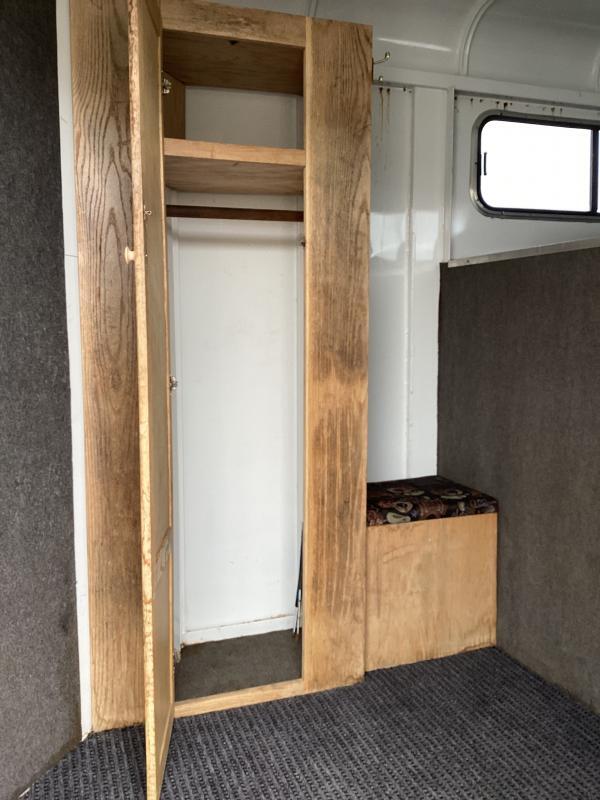****TRAILER IS HERE ON CONSIGNMENT Trailer features: - Steel construction - 6’ 10” wide - 7’ tall - RV battery box/tray - Single leg manual jack w/ drop foot - Tandem 5.2K Rubber torsion axles - Aluminum running boards & fenders - LT225/75R16 10 ply tires on 6 hole white steel wheels - 3 Exterior tie rings per side of horse area Dressing room features: - Window in entry door - Slider windows in GN area - Wardrobe/cabinet w/ mirror - Boot box - Swing out saddle rack - Interior light - Aluminum brush box on door - Carpet on floor, drop wall and gooseneck area Horse area features: - Rear storage/tack area with locking door - Drop down feed windows w/ sliders on head side - Open high side on tail side - Telescoping jail bar dividers w/ additional latching point for wider stall - 1 tie ring per stall - Interior lights on tail side up high - Rubber mats on floor - Rubber mats on walls Horse area stall dimensions: - 40” Pin to Pin measurement - Actual stall width: 31” - Stall length: 100” Trailer has had a fresh bearing pack w/ new seals, rear axle has brand new brakes, front axle brakes at 70% or better. ** Descriptions Subject to Error** For more information on this trailer please contact Double J Trailers at 541-812-1234. Thank You! Financing available to qualified buyers! All trailer prices are cash prices. Thank you! Trades Welcome Two Lots To Better Serve You! Woodland Washington & Albany Oregon We have over 250 trailers in stock. Please view our entire inventory at [www.double-j.com](http://www.double-j.com/) thank you! *Double J imposes a surcharge of 3% on credit card purchases of amounts greater than $500*