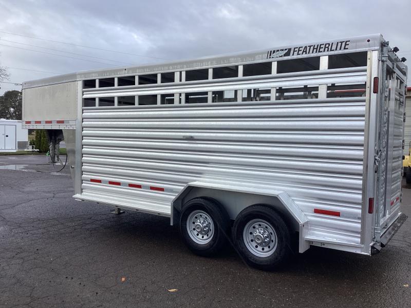 Value meets versatility in the famous Featherlite Model 8127, which features thicker side walls and an easy-to-use and durable slam latch. Length options range from 16’ to 36’. This gooseneck stock trailer offers prospective buyers the ability to customize their trailer from an almost endless list of customization options. This is a trailer that is guaranteed to be uniquely yours plus give you many years of reliable hauling! Upgrades: Western Package Escape Door Trailer Features: 7’ Width 16’ Floor Length 7’0” Inside Height Two Top Air Spaces Skid Resistant Extruded Aluminum Floor (2) 7000# Rubber Torsion E-Z Lube Axles w/Electric Brakes Spare Tire & Mount Goodyear ST235/80R16 LRE Tires on 8 hole Silver MOD Wheels & Hub Covers 2 5/16” Adjustable GN Coupler Single Speed Manual Jack Natural .063 Aluminum Exterior Sheets LED Clearance Lights (4) Wraparound LED Stop/Turn Lights 4” Cross Members on 12” Centers Rubber Dock Bumper Tapered GN Skid Plate Running Boards Stock Area Features: Full Swing Center Gate w/Walk Through & Slam Latch 54” Escape Door Full Swing Rear Gate w/Slider LED Dome Light w/Switch located under GN LED Load Light w/Switch Warranty: 10 Year Limited Structural Warranty 3 Year Hitch-to-Bumper Warranty Transferable Warranty ** Descriptions Subject to Error** For more information on this trailer please contact Double J Trailers at 541-812-1234. Thank You! Financing available to qualified buyers! All trailer prices are cash prices. Thank you! Trades Welcome Two Lots To Better Serve You! Woodland Washington & Albany Oregon We have over 250 trailers in stock. Please view our entire inventory at [www.double-j.com](http://www.double-j.com/) thank you! *Double J imposes a surcharge of 3% on credit card purchases of amounts greater than $500*