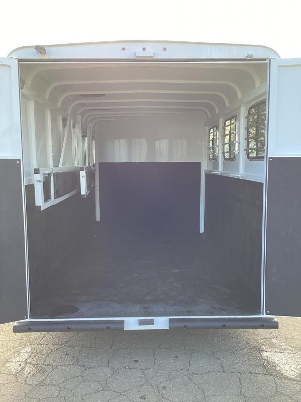 Upgrades: Spare Tire Extra Divider Catch 1’ Added Length Trailer Features: 7’ Inside Height 8’ 1” Overall Height 18’ 3” Floor Length 21’ 4” Overall Length 14” Floor Height 3750# Empty Weight 550# Hitch Weight 6150# Payload Capacity 5200# Axles 6” Roof Radius 82” Outside Width 102” Overall Width (including fenders) Electro-Galvanized Sheet Metal Epoxy Primer & PPG Polyurethane Paint 24” Front Diamond Plate Gravel Guard Diamond Plate on Tongue & Sides Rubber Dock Bumper Smooth Aluminum Fenders Smaller Aluminum Step Plates LED Lights 4 Wheel Electric Brakes Silver Mod Radial Tires Horse Area Features: Sealed and Enclosed Diagonal Wall Telescoping Padded Dividers Double Wall Construction Double Rear Doors Rubber Floor Mats Roof Vents Rubber Wall Mats 30” x 24” Drop Down Feed DoorWindows 24” x 20” Kick Side Windows Rear Load Light w/Switch Tack Area Features: Water Tank 10 Bridle Hooks Vent 2 Blanket Bars Swing Out Saddle Rack Caulk Package 32” RV Side Door w/Window Tack Door Organizer** Descriptions Subject to Error** For more information on this trailer please contact Double J Trailers at 541-812-1234. Thank You! Financing available to qualified buyers! All trailer prices are cash prices. Thank you! Trades Welcome Two Lots To Better Serve You! Woodland Washington & Albany Oregon We have over 250 trailers in stock. Please view our entire inventory at [www.double-j.com](http://www.double-j.com/) thank you! *Double J imposes a surcharge of 3% on credit card purchases of amounts greater than $500*