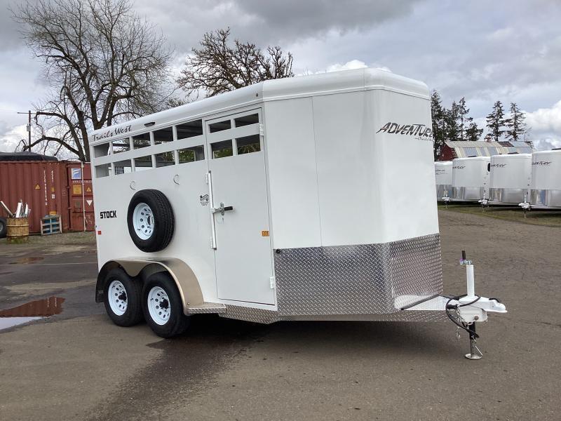 Our Adventure Stock is a bumper pull livestock trailer that measures 6’9” wide x 7’ tall. The design of this trailer has electro-galvanized seamless corrugated steel sides for strength and durability. This extra-safe stock trailer is light weight and built for safety. This is a great pulling trailer because of the aerodynamic design of the front, cutting the wind while still providing enough open space to haul your livestock in comfort. Check out this great priced trailer that is built for real stock men and women. FEATURES: · 6’9” Wide · 7’0” Tall · Side Gate (Passenger Side) · Double Air Gaps · Torsion Axles · Galvanized Steel Interior & Exterior Sheets · 1/2” Rubber Floor Mats · Tread Brite Front Gravel Guard · LED Interior Stock Light w/ Rear Switch · Rear Slider Gate · Rear Load Light · Backup Lights · 1 yr. Paint/Trim, 5 yr. Structure Warranty ** Descriptions Subject to Error** For more information on this trailer please contact Double J Trailers at 541-812-1234. Thank You! Financing available to qualified buyers! All trailer prices are cash prices. Thank you! Trades Welcome Two Lots To Better Serve You! Woodland Washington & Albany Oregon We have over 250 trailers in stock. Please view our entire inventory at [www.double-j.com](http://www.double-j.com/) thank you! *Double J imposes a surcharge of 3% on credit card purchases of amounts greater than $500*