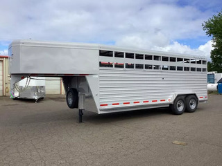 Our Hotshot gooseneck trailer is a 7’6” wide x 7’ tall livestock trailer. The design of this trailer has electro-galvanized seamless corrugated steel sides for strength and durability. This extra-safe stock trailer is light weight and built for safety. This is a great pulling trailer because of the aerodynamic design of the front, cutting the wind while still providing enough space in the gooseneck area for an optional tack package. Check out this great priced trailer that is built for real stock men and women. Upgrades: * Enclosed Rear Gate * Sort Gate in Center Gate Features * Aluminum One-Piece Roof * Electro-Galvanized, Corrugated Steel Sides * 7’6” Wide * 7’0” Tall * Slam Latch Rear Gate with Slider * Aluminum Tread Brite Front * Full Aluminum Side Steps * Aerodynamic Bullet Nose * 54” Side Gate on Passenger Side (open stock only) * Gooseneck Calf Gate * Torsion Axles * Radial Tires * Rubber Bumper * 2” x 10” Douglas Fir Flooring * Rubber Wall Mats * 4 Wheel Electric Brakes * Acidic Phosphatizing Wash * Polymer Coating * Epoxy Primer * Choice of Gray or White Paint Color Warranty * One Year Limited Paint/Trim Warranty * Five Year Limited Structure/Floor Warranty ** Descriptions Subject to Error** For more information on this trailer please contact Double J Trailers at 360-225-1234. Thank You! Financing available to qualified buyers! All trailer prices are cash prices. Thank you! Trades Welcome Two Lots To Better Serve You! Woodland Washington & Albany Oregon We have over 250 trailers in stock. Please view our entire inventory at [www.double-j.com](http://www.double-j.com/) thank you! *Double J imposes a surcharge of 3% on credit card purchases of amounts greater than $500*