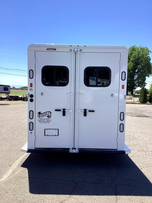 The Sierra is our flagship horse trailer model. It comes loaded with standard features such as aluminum wheels, anodized aluminum exterior extrusion, stainless-steel front, and fully-lined and insulated horse compartment. A fully-carpeted angle wall in the tack room allows you to hang plenty of tack without damaging your trailer. Its abundance of features make this THE trailer that serious equine enthusiasts are looking for. Upgrades: Comfort Package Escape Door Extra Tall Convenience Package which Includes: Spare Tire, Water Tank, Tack Door Organizer, (3) Exterior Load Lights & Sport Boot Bag. Trailer Features: 7’0” Wide 7’4” Inside Height Box length = 18’ 10” Total floor length = 21’ 6” Aluminum One-Piece Roof .050 Aluminum Exterior Sheets/Anodized Aluminum Extrusions 2x10 Douglas Fir Floor 6000# Torsion Axles Four Wheel Electric Brakes E-Z Lube Hubs Tack Room Features: 14” x 14” Camper Style Vent Fully Sealed Angle Wall w/Full Carpet Rubber Floor Mat 38” Tack Door w/Window Dome Light Swing Out Blanket Rack Swing Out Saddle Rack 16 Bridle/Halter Hooks Brush Tray Clothes Rod Water Tank Tack Door Organizer Sport Boot Bag Horse Area Features: Triple Wall Construction Lined & Insulated Roof & Walls Bottom Latch Drop Down Feed Doors w/Drop Down Safety Bars- Head Side Sliding Windows- Tail Side Slam Latch Aluminum Jailbar Dividers Divider Pads Pop-Up Roof Vent Each Stall Rubber Wall Mats LED Light Each Stall Rubber Floor Mats 45/55 Double Rear Doors w/Windows Paint & Trim Features: Acidic Phosphatizing Wash Polymer Coating Epoxy Primer Polyurethane Paint Infrared Cured Tread Brite Front Aluminum Wheels Double Tail Lights Rubber Dock Bumper LED Lighting Reverse Lights Molded 7-Way RV Plug Hot Wire Package w/Battery Box Warranty: 3 Year Paint/Trim 5 Year Limited Structure 8 Year Limited Floor ** Descriptions Subject to Error** For more information on this trailer please contact Double J Trailers at 541-812-1234. Thank You! Financing available to qualified buyers! All trailer prices are cash prices. Thank you! Trades Welcome Two Lots To Better Serve You! Woodland Washington & Albany Oregon We have over 250 trailers in stock. Please view our entire inventory at [www.double-j.com](http://www.double-j.com/) thank you! *Double J imposes a surcharge of 3% on credit card purchases of amounts greater than $500*