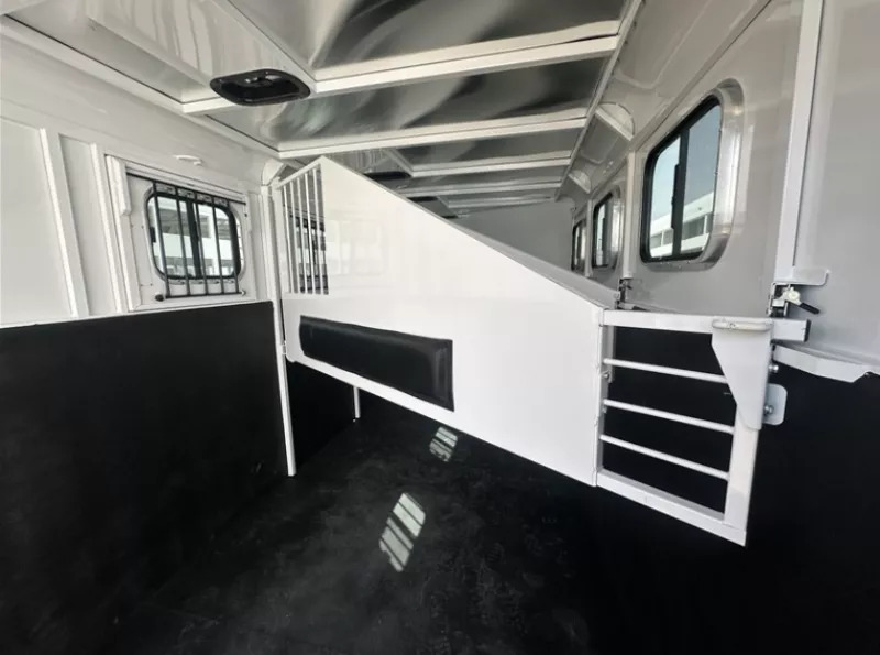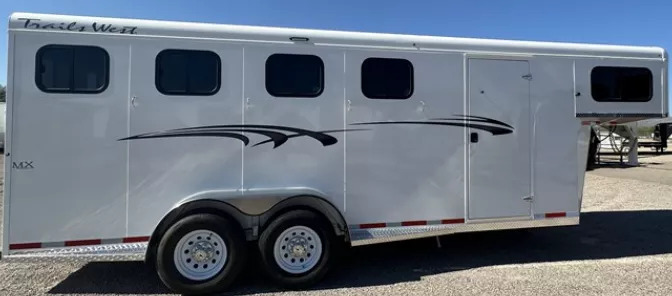 **PICTURES ARE NOT OF ACTUAL TRAILER, PICTURES ARE STOCK IMAGES** The Adventure MX is our best-selling horse trailer to date. It is the best-priced steel-framed aluminum-skinned trailer in the industry, and features the perfect combination of style and value. This trailer sports our newly designed aerodynamic front, and comes loaded with head-side drop-down feed windows, tail-side sliding windows and rubber-wall mats throughout the horse compartment, making it the best-equipped trailer in its class. **UPGRADES** * Convenience Package * includes: swing-out saddle rack, spare tire, water tank, door mounted tack organizer, sport bag, load light each side and rear gate * Windows in Rear Doors * Star Caps (Chrome Center Caps? on wheels) * Rubber mat instead of carpet Structural Features * 6’ 9” Wide, 7’0” Tall? * Triple Wall Construction? * Aluminum Exterior Sheets * 1 Piece Aluminum Roof? * Torsion Axles? * 4 Wheel Electric Brakes? * Easy Lube Hubs? * Radial Tires? * Aluminum Fenders? * Tread Brite Steps & Front Gravel Guard? * Rubber Bumper? * Molded Seven-Way RV Plug Tack Room Features * 32” Tack Door? * Dome Light? * Corner Brush Tray - Water Tank Ready? * Tack Door Brush Tray * Two, Three or Four Place Saddle Racks? * 16 Bridle Hooks? * 4 Place Blanket Rack? * Clothes Rod? * Camper Vent? * Carpeted Floor? * Carpeted GN Deck and Bulkhead? * Carpeted Angle Wall? * Screened Windows Each Side of Gooseneck Horse Compartment Features * Drop Down Feed Doors (head side) * Sliding Windows Tail Side * Dome Light * Rubber Wall Mats * Rubber Floor Mats * Jailbar/Flow Through Slam Latch Dividers * Tie Ring Each Stall * Double Rear Doors * Roof Vent Each Stall * Paint & Trim * Acidic Phosphatizing Wash? * Polymer Coating? * Epoxy Primer * Polyurethane Paint * Infrared Cured? Warranty * One Year Paint/Trim Warranty * Five Year Limited Structure/Floor Warranty ** Descriptions Subject to Error** For more information on this trailer please contact Double J Trailers at 360-225-1234. Thank You! Financing available to qualified buyers! All trailer prices are cash prices. Thank you! Trades Welcome Two Lots To Better Serve You! Woodland Washington & Albany Oregon We have over 250 trailers in stock. Please view our entire inventory at [www.double-j.com](http://www.double-j.com/) thank you! *Double J imposes a surcharge of 3% on credit card purchases of amounts greater than $500*
