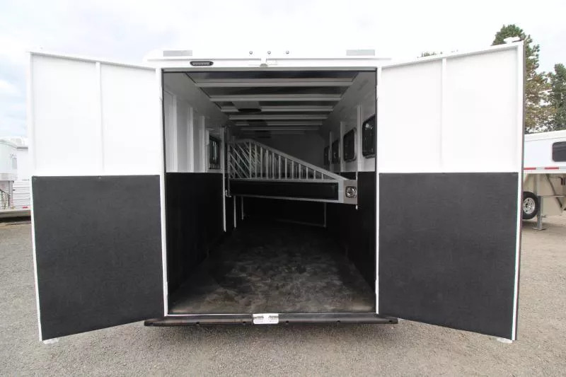 ** PICTURES ARE NOT OF ACTUAL TRAILER, PICTURES ARE STOCK IMAGES** Our Classic model is constructed with a steel frame and aluminum skins. It’s 7’0? wide, and 7’0? tall and comes standard with custom drop-down feed doors with face grills on the head side, sliding windows on the tail side, and a roof vent in each stall. The large 41? stalls provide plenty of room and comfort for your horse and feature the industry’s best slam latch divider system. The tack room is roomy and functional and features our state-of-the-art swing-out saddle and blanket racks. **Upgrades: * Convenience Package which includes: Spare Tire, Water Tank, Door Organizer, (3) Exterior Load Lights, Sport Bag * Supertack * Stud Divider * Escape Door * Vinyl Flooring in Dressing/Tack Room * Boot Box * 7000# Axles * Extra Tall Structural Features * 7’0” Wide, 7’4” Tall? * Aluminum One-Piece Roof * .050 Aluminum Exterior Sheets * Torsion Axles? with Easy Lube Hubs * 4 Wheel Electric Brakes? * Radial Tires? * Aluminum Wheels * Rubber Bumper * 2 x 10 Douglas Fir Flooring * Tread Brite Gussets & Gravel Guard * Reverse Lights * Double Tail Lights * Molded 7-Way RV Plug * LED Lighting * Hotwire Package w/Battery Box Tack Room Features * Super Tack (5x10 Double Door) * Fully Sealed Angle Wall * Carpeted Gooseneck Deck & Drop Wall * Screened Window on Each Side of Gooseneck * (2) 38” Tack Doors w/Windows * (4) Dome Lights in Gooseneck * Clothes Rod * Bridle Hooks * Headstall Holders * 2 Brush Trays * 2 Swing-Out Blanket Racks * 2 Swing-Out Saddle Racks * 2 Door Mounted Tack Organizers * 2 Sport Boot Bags * 25 Gallon Water Tank w/Hose Horse Compartment Features * Triple Wall Construction? * Bottom Latch Drop Down Feed Doors Head Side? * Drop Down Feed Door Safety Grill? * Sliding Windows Tail Side * Roof Vent in Each Stall? * LED Dome Light in Each Stall? * Slam latch, Aluminum, Jailbar Dividers? * Divider Pads? * Rubber Floor Mats? * Rubber Wall Mats? * 45/55 Double Rear Doors? Paint & Trim * Acidic Phosphatizing Wash * Polymer Coating * Epoxy Primer * Polyurethane Paint * Infrared Cured * Trailer Graphics Warranty * One Year Paint/Trim Warranty * Five Year Limited Structure Warranty * Eight Year Limited Floor Warranty ** Descriptions Subject to Error** For more information on this trailer please contact Double J Trailers at 360-225-1234. Thank You! Financing available to qualified buyers! All trailer prices are cash prices. Thank you! Trades Welcome Two Lots To Better Serve You! Woodland Washington & Albany Oregon We have over 250 trailers in stock. Please view our entire inventory at [www.double-j.com](http://www.double-j.com/) thank you! *Double J imposes a surcharge of 3% on credit card purchases of amounts greater than $500*