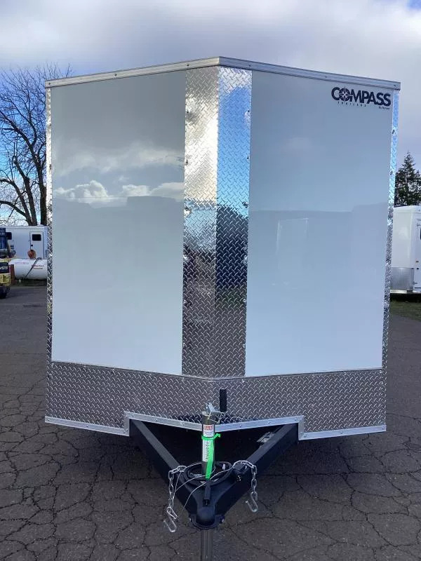 This is a 7’x16’ Indigo Cargo Flat Top Trailer w/ 18” V nose made by Compass/Look Trailers. This trailer is great for hauling anything you might need, such as your tools, camping gear or to haul your toys for a weekend getaway. The simple and sturdy design of the trailers make them easy to customize to your needs, especially with the V nose front that adds extra floor space. Check out more of the trailer’s features below. COMPASS TRAILERS ADD ONS: -Rear Ramp Door -Additional 6’’ Height (84” Total) -Spare Tire (205/75R15 5 lug 8 ply w/ Black Mod) -White Exterior Aluminum Skin Standard Features INDIGO 7’ Wide Cargo Trailers 4’’ Tube Main Frame Construction * 24” On Center Frame * 24” On Center Z Post Sidewalls * 24” On Center Roof Bows * (2) 3500# Lippert Axles w/ Brakes * EZ-Lube Hubs * 15” Tires * 2 5/16’’ A-Frame Coupler * Safety Chains * 2000# Tongue Jack w/ Sand pad * 3/4” High Performance Floor * 3/8” High Performance Wall * Aluminum Exterior * 1 Piece Aluminum Roof * Smooth Aluminum Fenders * 16” Stone guard * 32” Entry Door w/ flush lock * 7-Way Electric Plug * LED Tail Lights & Incandescent Clearance Lights * Limited 3 Year Warranty ** Descriptions Subject to Error** For more information on this trailer please contact Double J Trailers at 360-225-1234. Thank You! Financing available to qualified buyers! All trailer prices are cash prices. Thank you! Trades Welcome Two Lots To Better Serve You! Woodland Washington & Albany Oregon We have over 250 trailers in stock. Please view our entire inventory at [www.double-j.com](http://www.double-j.com/) thank you! *Double J imposes a surcharge of 3% on credit card purchases of amounts greater than $500*