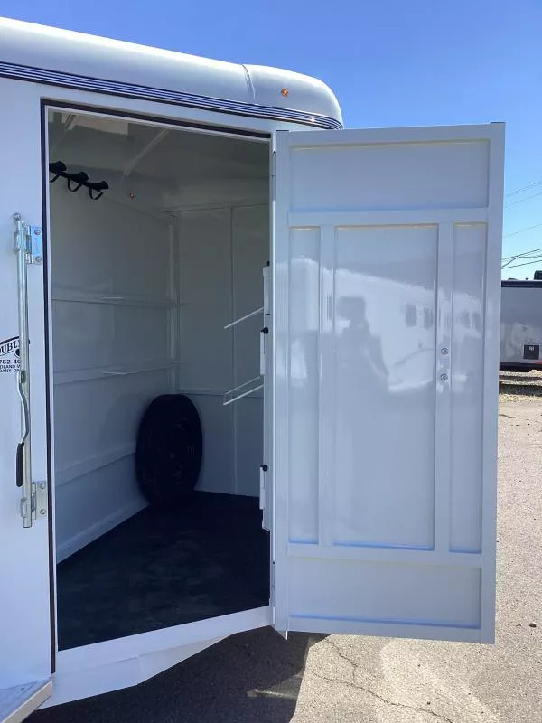 Upgraded Options: * Extra divider catch * Extra foot of length * Spare tire * Rear Flood Light w/Toggle Switch Standard Options: * 7’0” Inside Height * 3500K Axles * Overall Length 16’ 4” * Floor Height 14” * Empty Weight 2425# * Hitch Weight 375# * Payload Capacity 4575# * 6” Roof Radius, * 6’ 8” Inside Width * 82” Outside Width * 102” Overall Width (Including Fenders), * Electro-Galvanized Sheet Metal * Epoxy Primer & PPG Polyurethane Paint * Single Wall Construction * Removable Diagonal Wall * 24” Front Aluminum Diamond Plate * Telescoping Padded Dividers * Single Open Rear Door * Swing Out Saddle Tree * 5 Bridle Hooks * 2 Blanket Bars * Caulk Pkg * Floor Mats * Rubber Dock Bumper * LED Lights * Smooth Aluminum Fenders * Silver Modular Radial Tires * 4 Wheel Electric Brakes ** Descriptions Subject to Error** For more information on this trailer please contact Double J Trailers at 541-812-1234. Thank You! Financing available to qualified buyers! All trailer prices are cash prices. Thank you! Trades Welcome Two Lots To Better Serve You! Woodland Washington & Albany Oregon We have over 250 trailers in stock. Please view our entire inventory at [www.double-j.com](http://www.double-j.com/) thank you! *Double J imposes a surcharge of 3% on credit card purchases of amounts greater than $500*