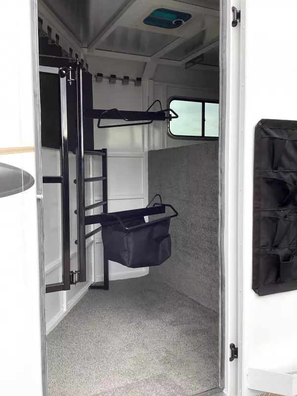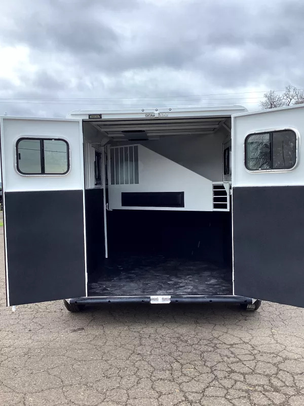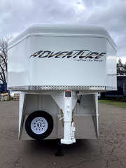 Adventure MX 2 Horse Gooseneck Trailer with tack room. Convenience package 3500# axles Tires: ST225/75R15 LRD Fully enclosed horse compartment with drop down feed windows head side, tail side windows and roof vents in each stall Rubber floor and wall mats Divider pad Structural Features * 6’ 9” Wide, 7’0” Tall? * Triple Wall Construction? * Aluminum Exterior Sheets * 1 Piece Aluminum Roof? * Torsion Axles? * 4 Wheel Electric Brakes? * Easy Lube Hubs? * Radial Tires? * Aluminum Fenders? * Tread Brite Steps & Front Gravel Guard? * Rubber Bumper? * Molded Seven-Way RV Plug Tack Room Features * 32” Tack Door? * Dome Light? * Corner Brush Tray - Water Tank Ready? * Tack Door Brush Tray * Two, Three or Four Place Saddle Racks? * 16 Bridle Hooks? * 4 Place Blanket Rack? * Clothes Rod? * Camper Vent? * Carpeted Floor? * Carpeted GN Deck and Bulkhead? * Carpeted Angle Wall? * Screened Windows Each Side of Gooseneck Horse Compartment Features * Drop Down Feed Doors (head side) * Sliding Windows Tail Side * Dome Light * Rubber Wall Mats * Rubber Floor Mats * Jailbar/Flow Through Slam Latch Dividers * Tie Ring Each Stall * Double Rear Doors * Roof Vent Each Stall ** Descriptions Subject to Error** For more information on this trailer please contact Double J Trailers at 541-812-1234. Thank You! Financing available to qualified buyers! All trailer prices are cash prices. Thank you! Trades Welcome Two Lots To Better Serve You! Woodland Washington & Albany Oregon We have over 250 trailers in stock. Please view our entire inventory at [www.double-j.com](http://www.double-j.com/) thank you! *Double J imposes a surcharge of 3% on credit card purchases of amounts greater than $500*