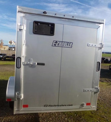 Protect and stow your belongings in dependable all-aluminum enclosed 5 x 10 enclosed cargo trailer from EZ Hauler. The single barn door for 5’ wides replaces the standard rear ramp. 26” x 58” side access door with paddle handle and piano hinge. * V-Nose Construction * 24” Stone Guard * Leaf Spring Axle w/4” Drop * Rear Ramp w/Spring Assist & Aluminum Hardware * Plastic Salem Vents * (1) Interior Dome Light w/Optional Switch (5’ Wide) * (1) Interior Dome Light w/Switch (6’ Wide) * Exterior LED Lighting * 5/8” Water Resistant Decking * 3/8” Water Resistant Interior Walls * Wood Luan Walls w/Kick Plate * Interior Cove Trim * 2” Coupler w/Safety Chain (5’, 6’ and 6’ SA Wide) * 2-5/16” Coupler w/Safety Chains (6’ TA Wide) * Screwless .030” Bonded Sides * Tires: 205/75R15 * 3” Exterior Trim * 4-Year Limited Warranty ** Descriptions Subject to Error** For more information on this trailer please contact Double J Trailers at 541-812-1234. Thank You! Financing available to qualified buyers! All trailer prices are cash prices. Thank you! Trades Welcome Two Lots To Better Serve You! Woodland Washington & Albany Oregon We have over 250 trailers in stock. Please view our entire inventory at [www.double-j.com](http://www.double-j.com/) thank you! *Double J imposes a surcharge of 3% on credit card purchases of amounts greater than $500*