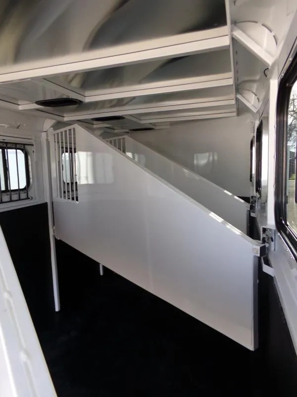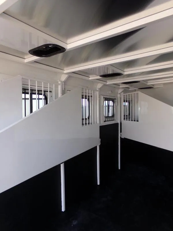 Structural Features 6’ 9” Wide, 7’0” Tall? * Triple Wall Construction? * Electro-galvanized Sheet Steel? * 1 Piece Aluminum Roof? * Torsion Axles? * 4 Wheel Electric Brakes? * Easy Lube Hubs? * Radial Tires? * Aluminum Fenders? * Tread Brite Steps & Front Gravel Guard? * Rubber Bumper? * Epoxy Primer? * Infrared Cured Polyurethane Paint? * Molded Seven-Way RV Plug? Tack Room Features * Steel Angle Wall * 32” Tack Door? * Dome Light? * Corner Brush Tray - Water Tank Ready? * Tack Door Brush Tray * Two, Three or Four Place Saddle Racks? * 16 Bridle Hooks? * 4 Place Blanket Rack? * Clothes Rod? * Camper Vent? * Rubber mats on floor Horse Compartment Features * Double Air Gaps, Head & Tail Slide? * Dome Light * Rubber Wall Mats * Rubber Floor Mats * Jailbar/Flow Through Slam Latch Dividers * Tie Ring Each Stall * Single Rear Door ** Descriptions Subject to Error** For more information on this trailer please contact Double J Trailers at 541-812-1234. Thank You! Financing available to qualified buyers! All trailer prices are cash prices. Thank you! Trades Welcome Two Lots To Better Serve You! Woodland Washington & Albany Oregon We have over 250 trailers in stock. Please view our entire inventory at [www.double-j.com](http://www.double-j.com/) thank you! *Double J imposes a surcharge of 3% on credit card purchases of amounts greater than $500*
