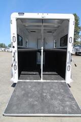 PRICE REDUCED $1,000! Royale SXS Do you have a big horse? Look no further than the Royale . This side by side trailer has one of the industry’s largest stalls, giving your horse the comfort and ride he or she deserves. The walk through loading style makes it a breeze to safely load or unload your horses. If you need to haul a load hay, no problem. The divider and hardware easily removes to create an open space. This one pulls great and a favorite of our customers. Upgrades : Convenience Package which includes; Spare tire, Water Tank, Door Mounted Organizer, Sport Bag, and Flood Lights on Each Side and rear. Rubber Floor Mats in tack room Aluminum Wheels Standard Features: 6&apos 9" Wide, 7&apos6" Tall Triple Wall Construction Aluminum Exterior Sheets 3500 LB Torsion Axles w/4 wheel electric brakes One Piece Aluminum Roof Radial Tires Aluminum Fenders and Steps Aluminum Tread Brite Front Gravel Guard Tack Room Features: Pass Through Door Two tack room doors Rubber floor mats Dome Light Camper Vent 16 - Bridle Hooks 4 -Blanket Rods 1 - Clothes Rod 2 -Stationary Saddle Racks 2 - Brush Trays 1 Tack door organizer Bench style water tank Horse Compartment Features: 2 x 12 Douglas Fir Floor Rubber Floor & Wall Mats Stall Pads Dome Light Drop Down windows w/ face bars Butt Straps Mangers Roof Vent Each Stall Ramp/Double Dutch Doors w/Windows Removable Flow Through Divider Paint Finish Features: Acidic Phosphatizing Wash Polymer Coating Epoxy Primer Polyurethane Paint Infrared Cured