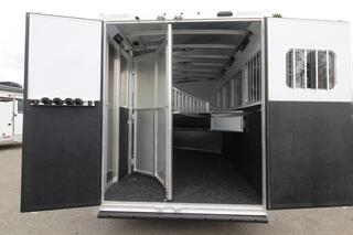 *BELOW COST!!* These slant load 4 horse bumper pull trailers have the looks, features and performance of a higher priced trailer at an incredible value. The Exiss 740 models feature spacious layouts, durable construction and impressive styling for the savvy trailer buyer. UPGRADES: · Load Lights · Interior LED Strip (22” Opti-Brite) · 7’ Wide Lower Divider Panel · Easy Care Flooring · Escape Door · Airflow Dividers · 1ft added length to the horse area SPECIFICATIONS: · Slant load · 7’0” wide · 7’6” tall · .040 white aluminum side sheets · (2) 7,000 lbs. rubber torsion axles w/ electric brakes · Five 15” 6 hole aluminum wheels w/ 8 ply tires (includes spare) · Full length running boards w/ tear-drop fenders · 2,000 lbs. top-wind jack w/ wheel · Breakaway switch w/ battery & slip hook safety chains · Treadplate gravel guard 16” high on nose · LED brake, running lights and rear load light Dressing Room: · Extra Large Dressing room/Tack room · One saddle rack per horse in rear tack · Blanket bar, brush tray, clothes rod and six halter hooks · One interior LED light in dressing room Rear Tack: · Collapsible Fold-up rear tack wall (lined one side) · One set of 6 halter hooks · One interior LED light in rear tack Horse Area: · Full height wall aluminum lining w/ rubber and aluminum kickplate up 48” · Streetside drop feed windows w/ curbside sliding windows · One window in rear load door · Escape Door · Air Flo Slant stall dividers · Fully recessed slam latch for divider · Double rear doors w/ cam locks and locking hasps · Full-width rear rubber bumper · Single piece aluminum roof w/ one roof vent per stall · Interlocking extruded plank flooring w/ 2” x 4” I-beams on 16” centers · Two inside tie rings and two outside tie rings per horse · One interior LED light per divider in horse area Warranty: · 3/8 transferable warranty ** Descriptions Subject to Error** For more information on this trailer please contact Double J Trailers at 360-225-1234. Thank You! Financing available to qualified buyers! All trailer prices are cash prices. Thank you! Trades Welcome Two Lots To Better Serve You! Woodland Washington & Albany Oregon We have over 250 trailers in stock. Please view our entire inventory at [www.double-j.com](http://www.double-j.com/) thank you! *Double J imposes a surcharge of 3% on credit card purchases of amounts greater than $500*