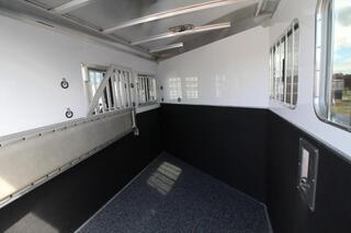 Horse owners will enjoy the durability and value of Featherlite’s slant load bumper pull Model 9400. The 9400 includes roomy stalls and double rear doors with stainless steel pipe hardware as standards. The great-looking and durable Featherlite aluminum ’wave’ side panels as well as our Air Flo dividers are standard too. Upgrades: * Easy Care Flooring * Battery Package * Tack Room Door Step * Lined & Insulated Tack Room Ceiling Trailer Features: * 7’ Width * 7’6” Inside Height * Two 3500 lbs. Rubber Torsion Axles w/Electric Brakes * Four 16” 6 Hole Silver Aluminum Wheels w/ GoodYear ST235/80R16 Load Range E Tires * Hub Covers * 2 5/16” Coupler * Wave Panel w/ White pre-painted.040 Aluminum Rivetless Exterior Sheets * Spare Tire Carrier w/ Matching Spare Tire * Crank Type Jack w/ Wheel * LED Clearance Lights * Four LED Stop/Turn Lights * LED Load Light Above Rear Load Door w/Switch at Rear * Interlocking Smooth Extruded Aluminum Floor * Solid Roof to Floor Wall Seperating Horse Area From Dressing Room ( lined on horse side only) * Gravel Guard * Rubber Dock Bumper * One Outside Tie Ring per Horse per Side * Aluminum Running Boards Horse Area Features: * Double Rear Doors w/19”x26” windows, stainless double pipe hardware, no center post * Nylon Strap Behind Rear Horse * One Square drop down Feed Door 32 5/8”x25 5/8” w/Drop Down Bars for Each Horse * One 34 1/4”x22” Window w/ Bars Behind Each Horse * Air Flo Slant Stall Dividers w/ Shoulder Seperator and Slam Latch- Spring Loaded * Full Length Stall Pads on Dividers * .090 Aluminum up 48” on Wall Behind the Horses * .090 Aluminum up 48” on Wall in Front of the Horses * Wall Rubber up 48” on wall Behind the Horses * Wall Rubber up 44” on Wall in Front of the Horses * White .040 ALuminum Lining Above the Wall Rubber * 1 5/8” Side Posts * 1 5/8” Wall Insulation * One Pop-Up Roof Vent per Horse * LED 12V/20W Strip w/Switch * Five Inside Tie Rings per Horse Dressing Room Features: * Clothes Rod w/Hat Shelf Above * Turf on Dressing Room Walls, Floor and Doors * 1 5/8” Wall Insulation * One LED 12V/20W Strip Above Camper Door w/Switch * Black Plastic Brush Tray Mounted Low on Door * One Adjustable Saddle Rack per Horse Premier Tack Accessories: * 18” x 43” Mirror * Aluminum Storage Box 24” Deep x 18” Tall x 30” Long Covered in Turf * 25 Gallon Upright Water Caddy w/ Stand * Stable Fork w/ Wall Mount Brackets * 14” x 14” Crank Type Roof Vent * Grooming Bag * 12 Aluminum Halter Hooks * Swing Out Saddle Rack w/ Integrated 4 Place Blanket Bar Stall Measurements: * front stall width is 33” * divider is 97” long * rear stall is 43” wide * ** Descriptions Subject to Error** For more information on this trailer please contact Double J Trailers at 360-225-1234. Thank You! Financing available to qualified buyers! All trailer prices are cash prices. Thank you! Trades Welcome Two Lots To Better Serve You! Woodland Washington & Albany Oregon We have over 250 trailers in stock. Please view our entire inventory at [www.double-j.com](http://www.double-j.com/) thank you! *Double J imposes a surcharge of 3% on credit card purchases of amounts greater than $500*