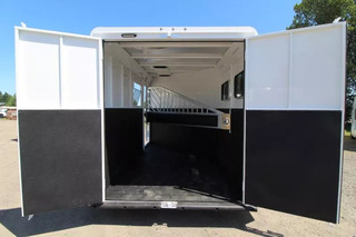 The Classic model is constructed with a steel frame and aluminum skins. It’s 7’0” wide, 7’4” tall with custom drop down feed doors with face grills on the head side, a roof vent in each stall and sliding windows on the tail side. The large 41” stalls provide room and comfort for your horse locked in with the industry’s best slam latch divider system. The tack room is very roomy and functional with swing-out saddle and blanket racks. Upgraded Features: * Convenience Package; Includes Spare Tire, Water Tank, Door-Mounted Organizer, Sport Bag, Flood Light Each Side & Rear * Warmblood Height * Rubber Floor Mats * Escape Door Structural Features: * Floor Length: 14’6” * Width: 7’0” Wide * Height: 7’4” Tall * .050 Aluminum Exterior Sheets * Torsion Axels with Easy Lube Hubs * Four Wheel Electric Brakes * Aluminum Wheels * Radial Tires * Rubber Bumper * 2x10 Douglas Fir Flooring Horse Area Features: * Triple Wall Construction * Bottom Latch Drop Down Feed Doors Head Side * Drop Down Window w/ Safety bars * Sliding Windows Tail Side * Roof Vent in Each Stall * LED Dome Light in Each Stall * Slam Latch, Aluminum, Jailbar Dividers * Divider Pads * Floor Mats * Wal Mats * 45/55 Double Rear Doors Tack Room Features: * Fully Sealed Angle Wall W/Full Carpet * 38” Tack Door with Window * Dome Light * Clothes Rod * 12 Bridle Hooks * 4 Headstall Holders * 2 Brush Trays * Swing-Out Saddle Rack * Swing-Out Blanket Rack Paint & Trim: * Acidic Phosphatizing Wash * Polymer Coating * Epoxy Primer * Polyurethane Paint * Infrared Cured * Double Tail Lights * LED Lighting * Backup Lights Warranty: * Three Year Limited Paint/Trim * Five Year Limited Structure * Eight Year Limited Floor ** Descriptions Subject to Error** For more information on this trailer please contact Double J Trailers at 360-225-1234. Thank You! Financing available to qualified buyers! All trailer prices are cash prices. Thank you! Trades Welcome Two Lots To Better Serve You! Woodland Washington & Albany Oregon We have over 250 trailers in stock. Please view our entire inventory at [www.double-j.com](http://www.double-j.com/) thank you! *Double J imposes a surcharge of 3% on credit card purchases of amounts greater than $500*