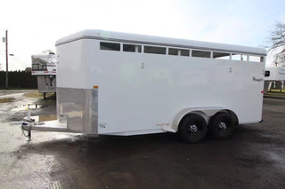 Upgraded Options: * Extra divider catch * Extra foot of length * Spare tire * Rear Flood Light w/Toggle Switch Standard Options: * 7’0” Inside Height * 5200K Axles * Overall Length 17’ 4” * Floor Height 15” * Empty Weight 3250# * Hitch Weight 550# * Payload Capacity 6650# * 6” Roof Radius, * 6’ 8” Inside Width * 82” Outside Width * 102” Overall Width (Including Fenders), * Electro-Galvanized Sheet Metal * Epoxy Primer & PPG Polyurethane Paint * Single Wall Construction * Removable Diagonal Wall * 24” Front Aluminum Diamond Plate * Telescoping Padded Dividers * Single Open Rear Door * Swing Out Saddle Tree * 5 Bridle Hooks * 2 Blanket Bars * Caulk Pkg * Floor Mats * Rubber Dock Bumper * LED Lights * Smooth Aluminum Fenders * Silver Modular Radial Tires * 4 Wheel Electric Brakes ** Descriptions Subject to Error** For more information on this trailer please contact Double J Trailers at 360-225-1234. Thank You! Financing available to qualified buyers! All trailer prices are cash prices. Thank you! Trades Welcome Two Lots To Better Serve You! Woodland Washington & Albany Oregon We have over 250 trailers in stock. Please view our entire inventory at [www.double-j.com](http://www.double-j.com/) thank you! *Double J imposes a surcharge of 3% on credit card purchases of amounts greater than $500*