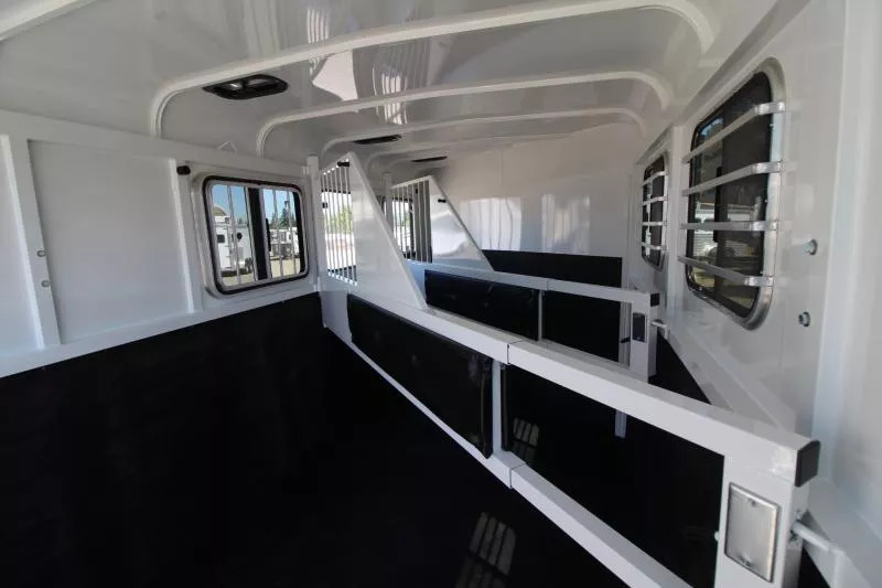 Upgrades: Spare Tire Extra Divider Catch 2’ Added Length Trailer Features: 7’ Inside Height 8’ 1” Overall Height 18’ 3” Floor Length 20’ 4” Overall Length 14” Floor Height 3750# Empty Weight 550# Hitch Weight 6150# Payload Capacity 5200# Axles 6” Roof Radius 82” Outside Width 102” Overall Width (including fenders) Electro-Galvanized Sheet Metal Epoxy Primer & PPG Polyurethane Paint 24” Front Diamond Plate Gravel Guard Diamond Plate on Tongue & Sides Rubber Dock Bumper Smooth Aluminum Fenders Smaller Aluminum Step Plates LED Lights 4 Wheel Electric Brakes Silver Mod Radial Tires Horse Area Features: Sealed and Enclosed Diagonal Wall Telescoping Padded Dividers Double Wall Construction Double Rear Doors Rubber Floor Mats Roof Vents Rubber Wall Mats 30” x 24” Drop Down Feed DoorWindows 24” x 20” Kick Side Windows Rear Load Light w/Switch Tack Area Features: Water Tank 10 Bridle Hooks Vent 2 Blanket Bars Swing Out Saddle Rack Caulk Package 32” RV Side Door w/Window Tack Door Organizer ** Descriptions Subject to Error** For more information on this trailer please contact Double J Trailers at 360-225-1234. Thank You! Financing available to qualified buyers! All trailer prices are cash prices. Thank you! Trades Welcome Two Lots To Better Serve You! Woodland Washington & Albany Oregon We have over 250 trailers in stock. Please view our entire inventory at [www.double-j.com](http://www.double-j.com/) thank you! *Double J imposes a surcharge of 3% on credit card purchases of amounts greater than $500*